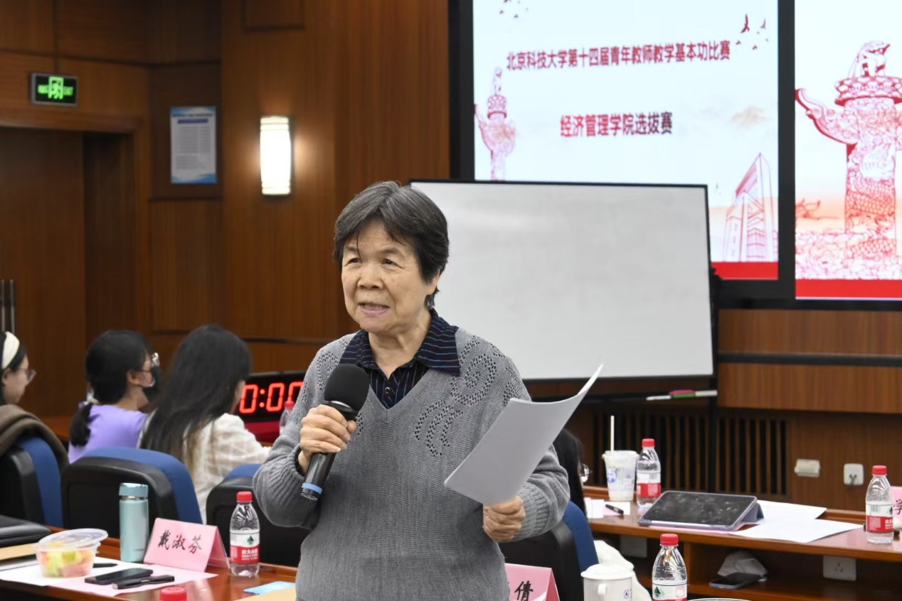 现场授课展示环节结束后,学校督导组组长许纪倩老师代表专家评委对本次比赛及老师们的表现进行了精彩点评。评委们认为参赛教师们围绕各自学科特点在教学设计、内容呈现、教学方法运用等方面有较高水平。希望参赛教师们精益求精,通过学习打磨,提升自身业务水平,在未来校级、市级比赛中取得好成绩,为创新型人才培养和经济管理学院高质量发展贡献力量。