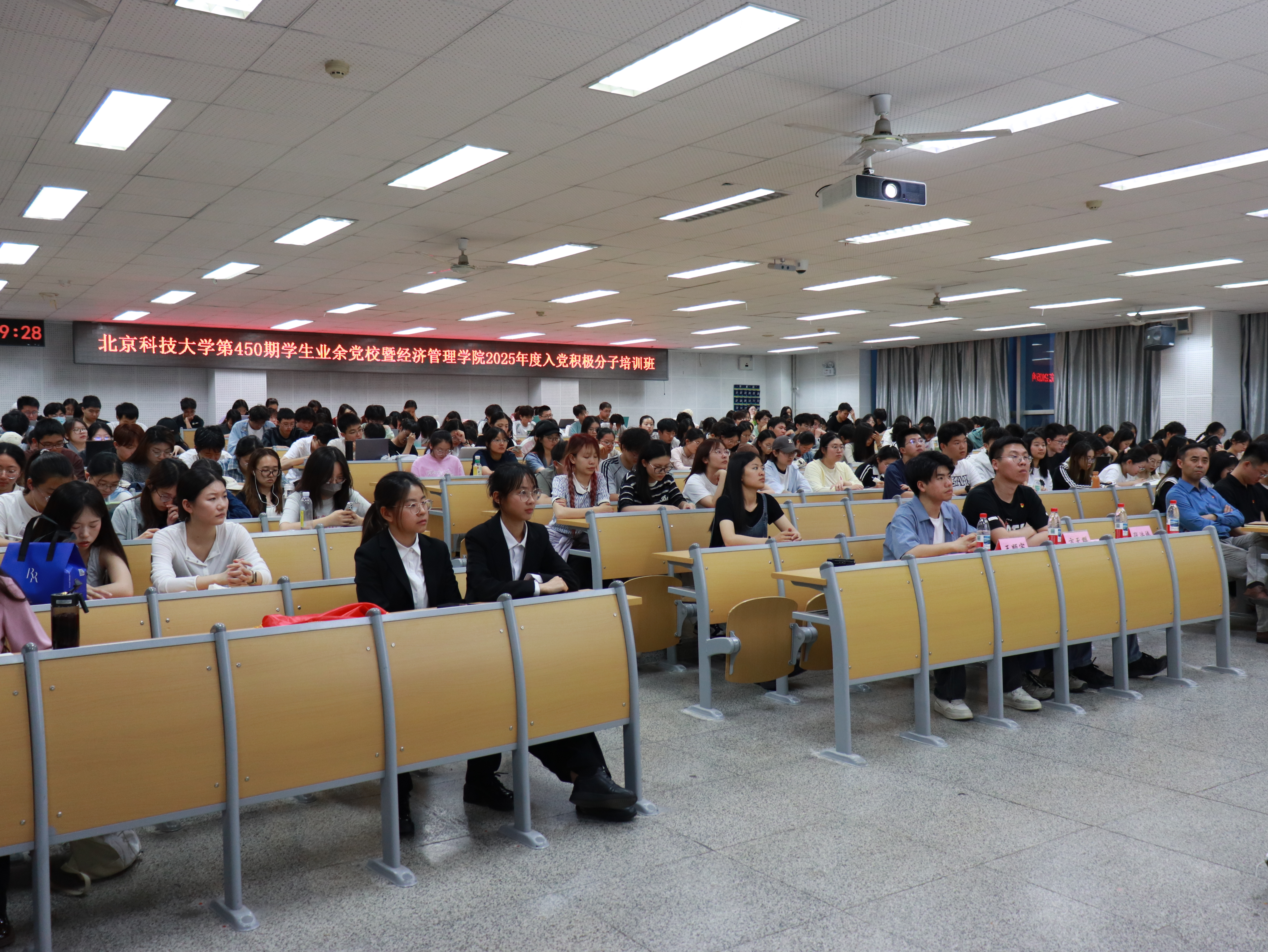 为深入学习贯彻习近平新时代中国特色社会主义思想和党的二十大精神,贯彻落实习近平总书记给我校师生两封重要回信精神,根据学校党委关于学生党员发展和入党积极分子培养的基本要求,学院于2025年5月15日举办北京科技大学第450期学生业余党校暨经济管理学院2025年度入党积极分子培训班开班仪式。
