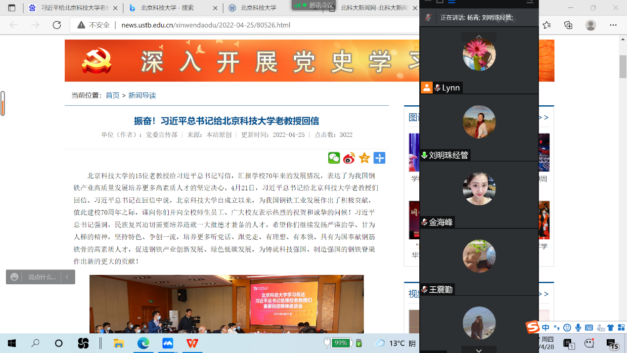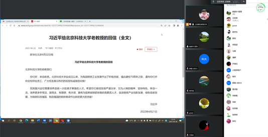2022年4月21日,中共中央总书记、国家主席、中央军委主席习近平在学校建校70周年前夕给北京科技大学老教授们回信,充分肯定了学校自成立以来为我国钢铁工业发展作出的积极贡献,对培养更多高素质人才,促进钢铁产业创新发展、绿色低碳发展提出殷切希望。为深入学习贯彻习近平总书记给学校老教授重要回信精神,根据学校党委统一要求和部署,经济管理学院党委高度重视,及时组织学院全体师生党支部以线上、线下相结合的学习方式开展学习。