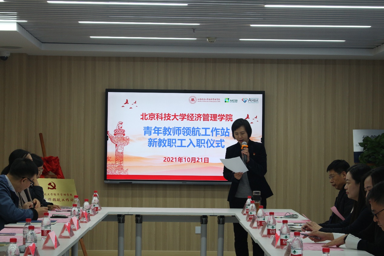 2021年10月21日下午,北京科技大学经济管理学院青年教师领航工作站新教职工入职仪式在经管楼1205隆重举行。学校党委副书记、纪委书记戴井岗,学院领导班子成员、全体成长导师和全体新入职青年教职工参加了大会。会议由学院副院长、副书记温雅主持。