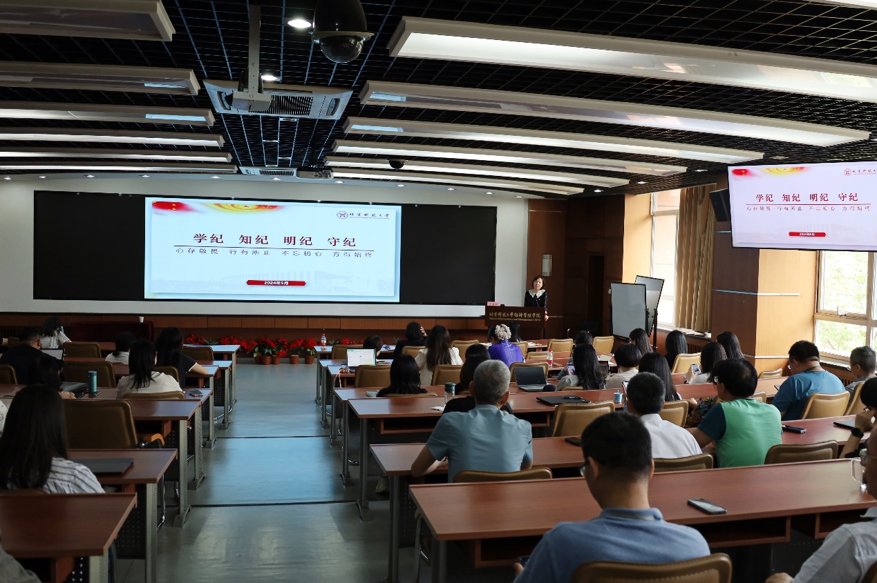 为深入推动党纪学习教育走深走实,5月16日,经济管理学院召开全院教职工理论学习暨全院大会,邀请纪委办公室、监督检查室副处级纪检员邓春秋作深入解读《中国共产党纪律处分条例》(以下简称《条例》)的专题辅导报告。学院全体教职工参加学习,会议由学院党委书记武森主持。