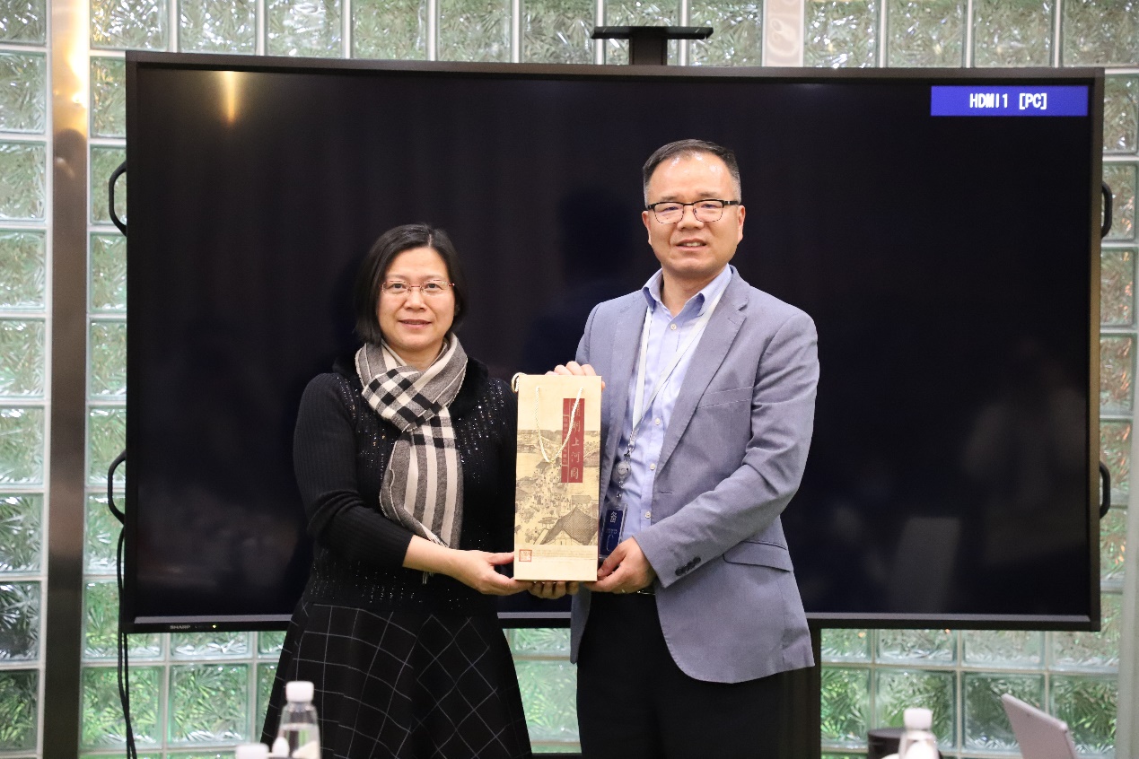 Wu Sen giving a souvenir to NavInfo