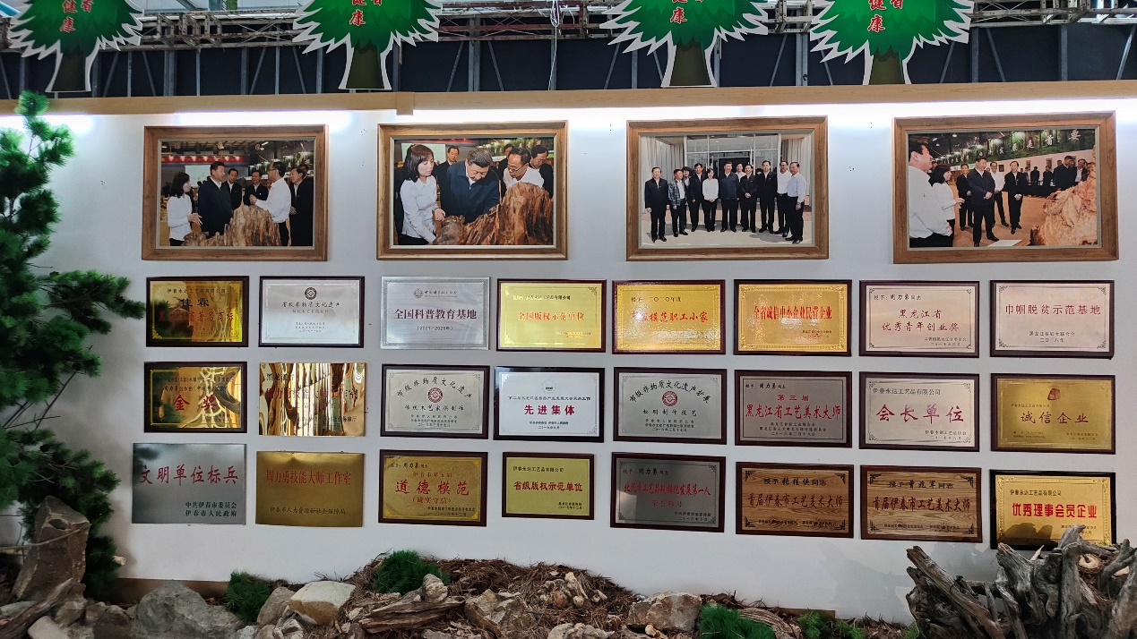 随后游学团参观了永达木艺公司展厅,永达木艺作为宜春地区发展林下经济的龙头企业,曾作为林下经济企业代表接待过主要国家领导人的参观。小兴安岭地区特有红松松香,经过千年的腐化、沉淀、累积,形成了特有的北沉香,永达木艺将北沉香作为原料,采用精致的木雕工艺,将沉睡千年的沉香以惊艳的姿态重现世间,北沉香雕刻产品,既具备很好的艺术鉴赏价值,其本身散发的香氛物质又对身体有保健作用,是市场的畅销品。