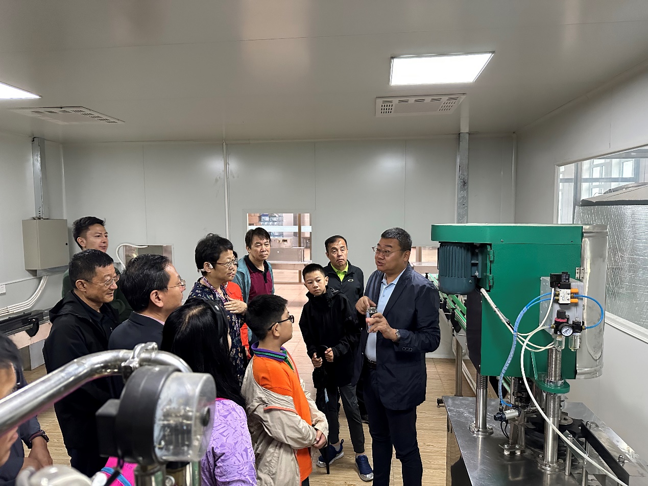 游学活动首先参观了陈喆校友投资的百沃生物科技公司桦树酒厂。百沃生物因地制宜,利用小兴安岭地区大面积种植的桦树,提取其中精华的桦树汁,用独创的发酵工艺酿造桦树酒,并通过反复蒸馏的方法,制造出适合国人口味的高度白酒,深受消费者的喜爱。
