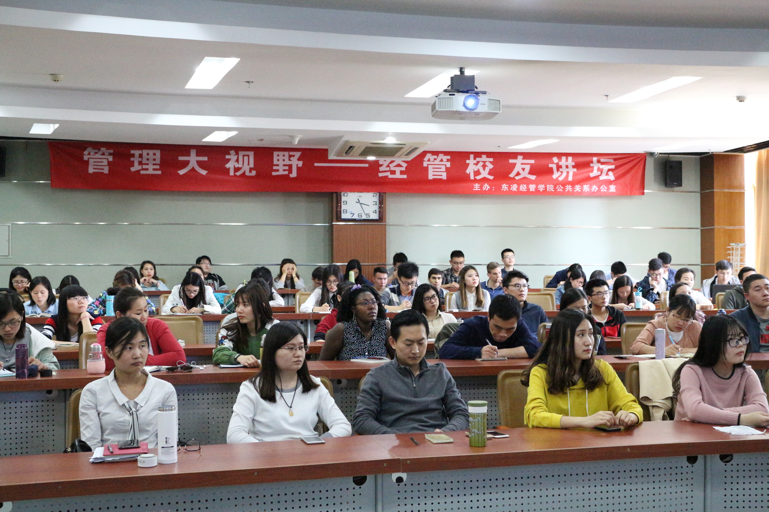 2017年4月26日,“管理大视野—经管校友讲坛”第十八讲在经管楼312教室举办。本期讲座主题为“直面新时代企业战略和人生规划”,主讲嘉宾为我院管研84级校友肖玉新,曾任北京科技大学管理系副教授、系副主任,英国阿伯丁大学商学院、桑德兰大学商学院高级讲师;现任上市公司宝信软件公司市场总监、运营改善部部长,2007年开始进入工业界,先后担任宝钢集团信息处长、宝钢股份战略管理首席,在东西方企业战略管理、运营管理领域具有丰富的教学、研究和实践经验。