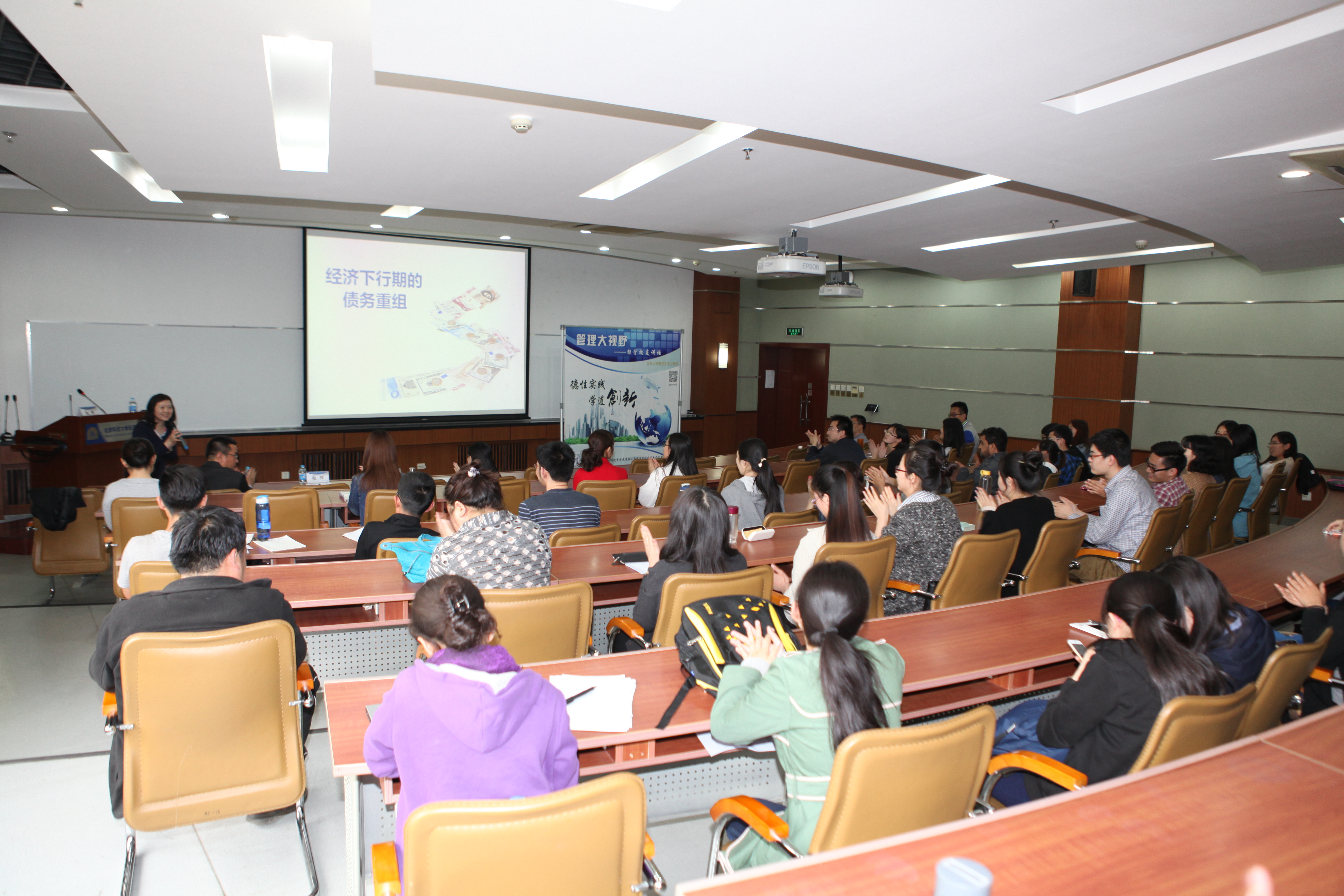 下午3:30活动开始。党委书记戴淑芬介绍了主讲校友和经管校友讲坛系列活动,之后讲座开始。赵伟校友以亲身经历的四个典型案例为线索,简要介绍了债务重组的相关知识和实务操作。