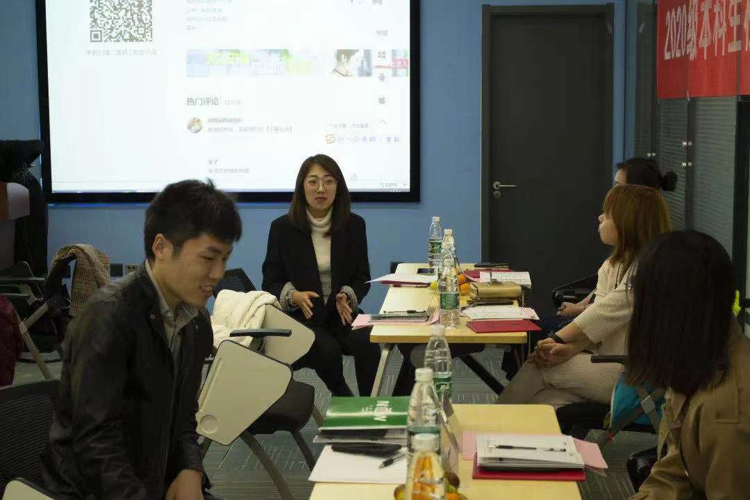 在新生辅导员、新生代表与成长导师交流环节,学院党委副书记倪宇也分享了9年来校友成长导师发展的历程,同时也给校友更好的与学生贴近距离,给予学生正能量的引导的方式方法提供了建议。2020级两位辅导员分别向校友成长导师介绍了00后学生的一些特点,希望学生们能够在师兄师姐的指导下,把大学四年的学习生活过得更有意义。接着两位新生代表也向成长导师们说了他们刚入学存在的疑惑以及遇到的困难等。校友成长导师们也结合了自己的经历给出了不同的建议和指导。