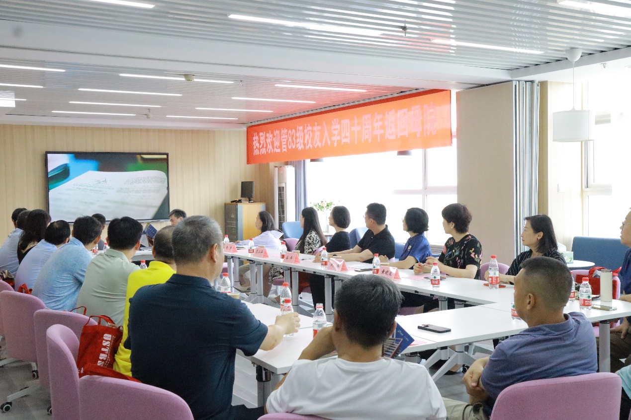 2023年7月2日上午,经管学院83级校友入学40周年返校活动在经管楼1205顺利举行。来自学院83级的20余名校友不远千里,从五湖四海齐聚母校,赴青春之约,追忆往日时光,共叙同窗之情。经管学院院长谷炜,学院党委书记武森,学院副院长范小华、黄晓霞,学院党委副书记、副院长倪宇出席活动。活动由83级校友张亚林主持。