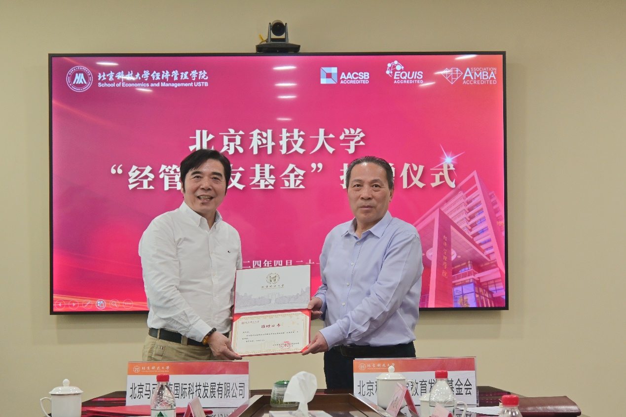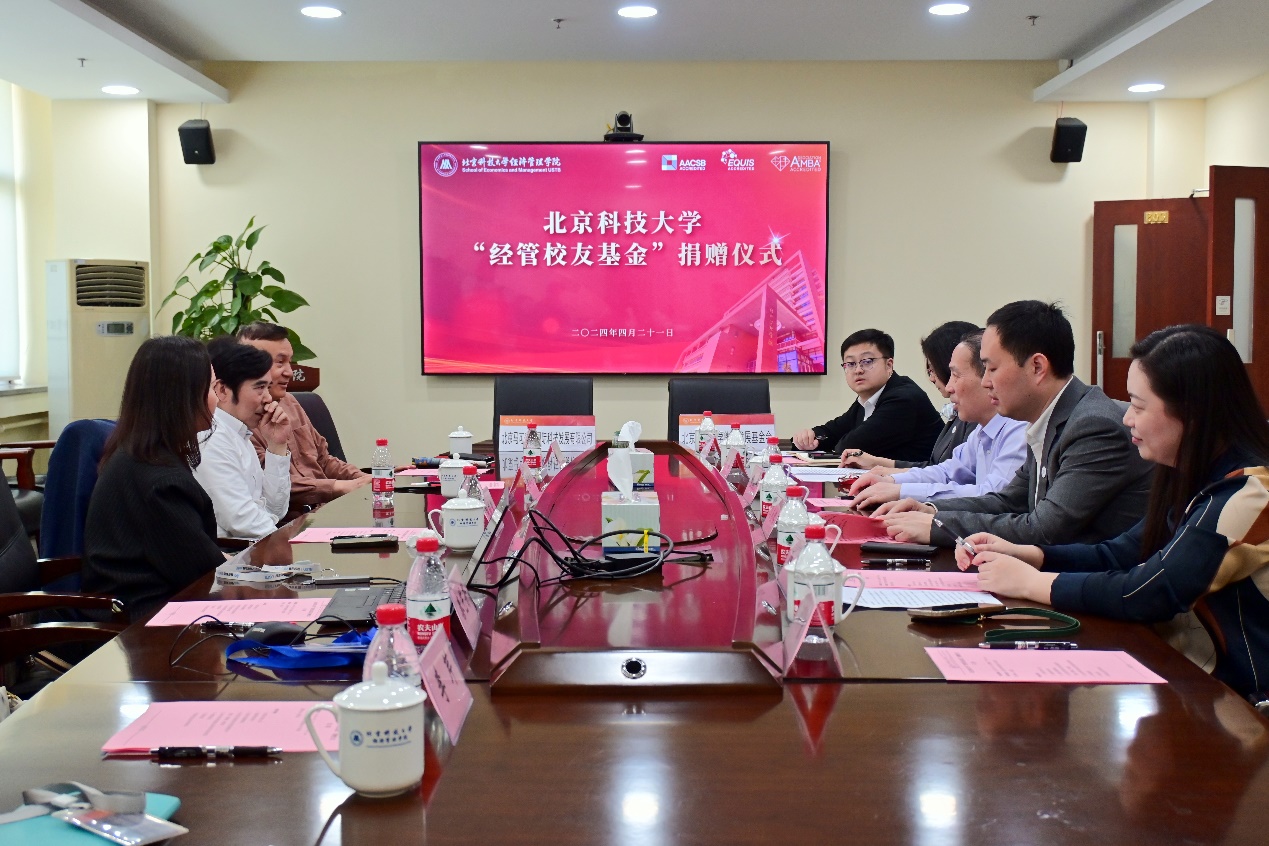 4月21日,北京科技大学“经管校友基金”捐赠仪式在经管楼809会议室举行。捐资人、管研87级校友、中国资源国际发展有限公司董事长林绍荣,中国资源国际发展有限公司董事长秘书陈晓意,校务委员会副主任、原副校长王维才,学校校友会办公室、基金会办公室主任闫奎铭,学院党委书记武森,党委副书记、副院长倪宇出席捐赠仪式。学院办公室、校友与基金办公室、教师代表、校友代表参加活动。仪式由学院党委副书记、副院长杨志达主持。