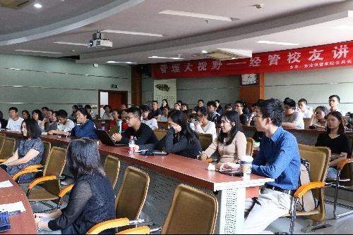 活动开始在下午3:30。学院党委书记戴淑芬教授首先介绍主讲校友和经管校友讲坛系列活动后,讲座开始。李杰校友介绍了他事业从零到一的坎坷经历和OPPO在印尼的发展历程。