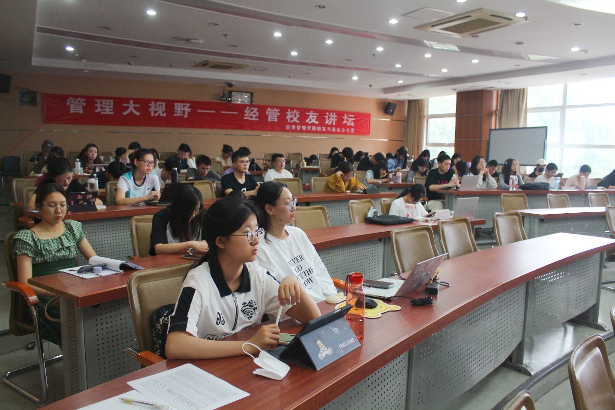 讲座最后,武森书记代表学院再次向程全明校友的精彩分享表达了感谢,并介绍了程全明校友读博期间勤奋学习、刻苦上进的求学经历。她鼓励同学们以优秀校友为榜样,珍惜在校学习时光,努力拼搏,成为有担当、有能力的新时代青年。她热忱地欢迎校友们常回来看看,继续关注和支持学院的发展建设,并表示为搭建校友和在读学子的交流桥梁,“管理大视野——经管校友讲坛”会持续邀请优秀校友担任主讲嘉宾,带来不同的行业前沿知识,欢迎大家继续关注。