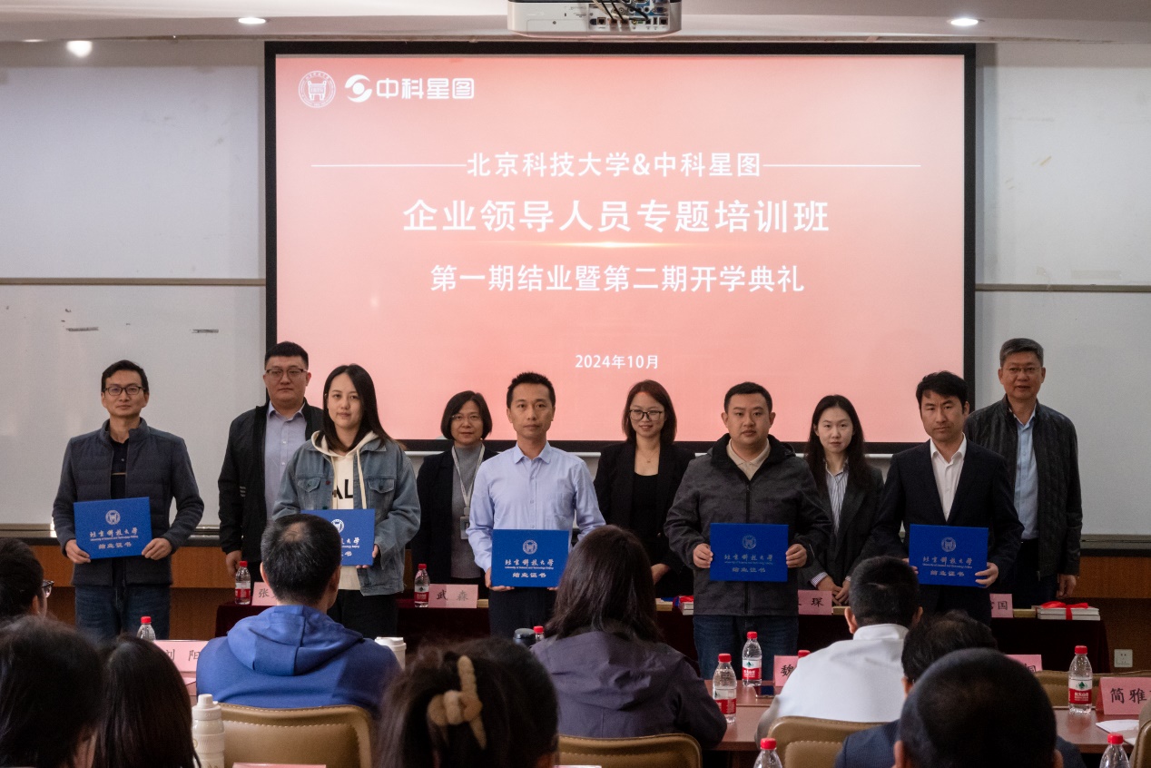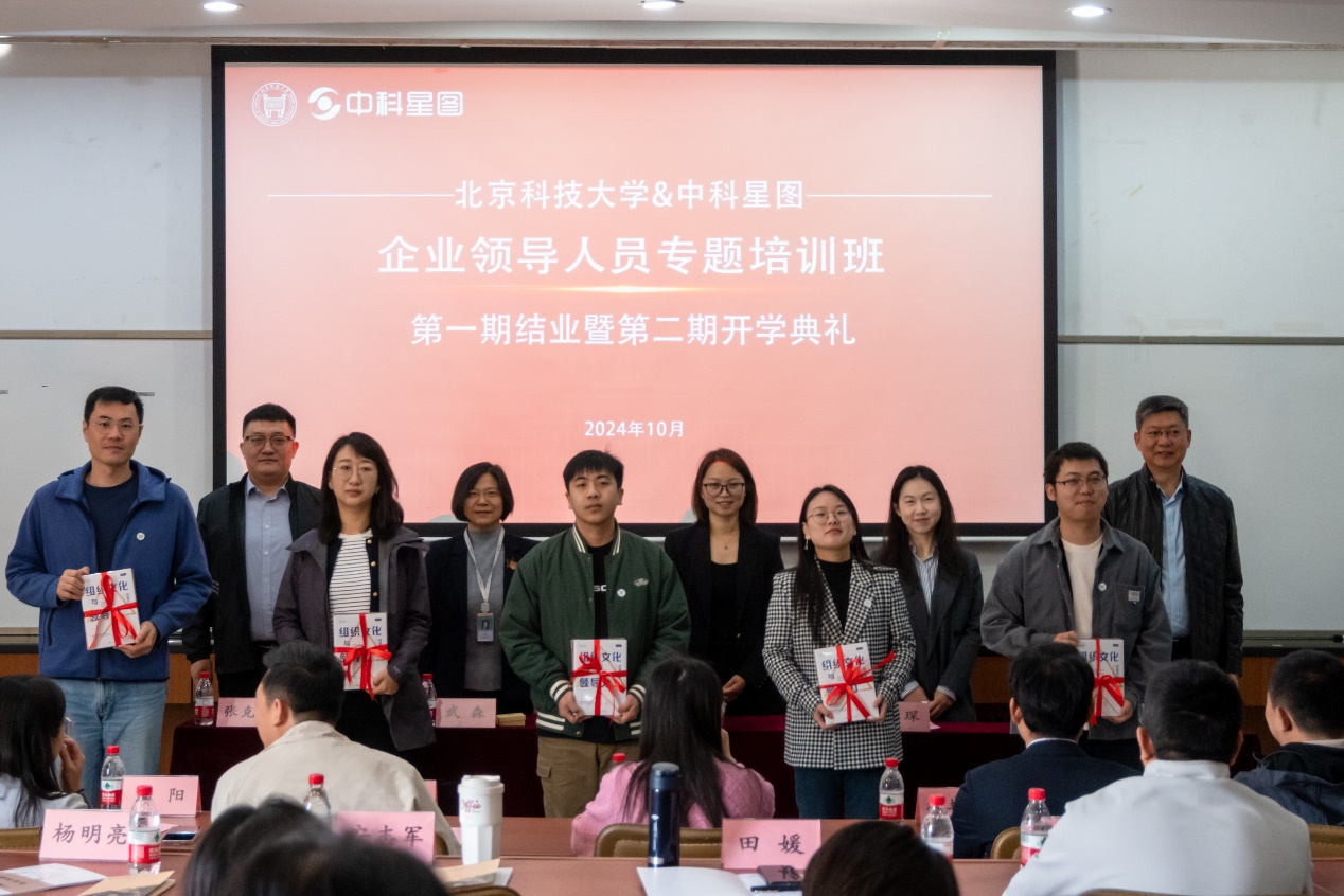 10月19日,北京科技大学—中科星图股份有限公司企业领导人员专题培训班第一期结业暨第二期开学典礼在我院举行。中科星图股份有限公司高级副总裁李会丹、中科星图股份有限公司总裁助理张克强、中科星图股份有限公司数字地球学院综合管理办公室主任傅信国,北京科技大学经济管理学院党委书记武森、专硕中心主任王琛出席了典礼。