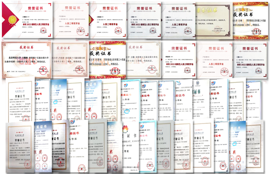 曾获北京科技大学人民三等奖学金、优秀共青团干部、暑期社会实践先进个人,“青创北京”2024年“挑战杯”首都大学生创业计划竞赛金奖等个人荣誉;带领班级获评“先进班集体、优秀团支部标兵”、2023-2024学年秋季学期主题团日优秀团支部,支部党班团协同创新项目入选全校重点项目。