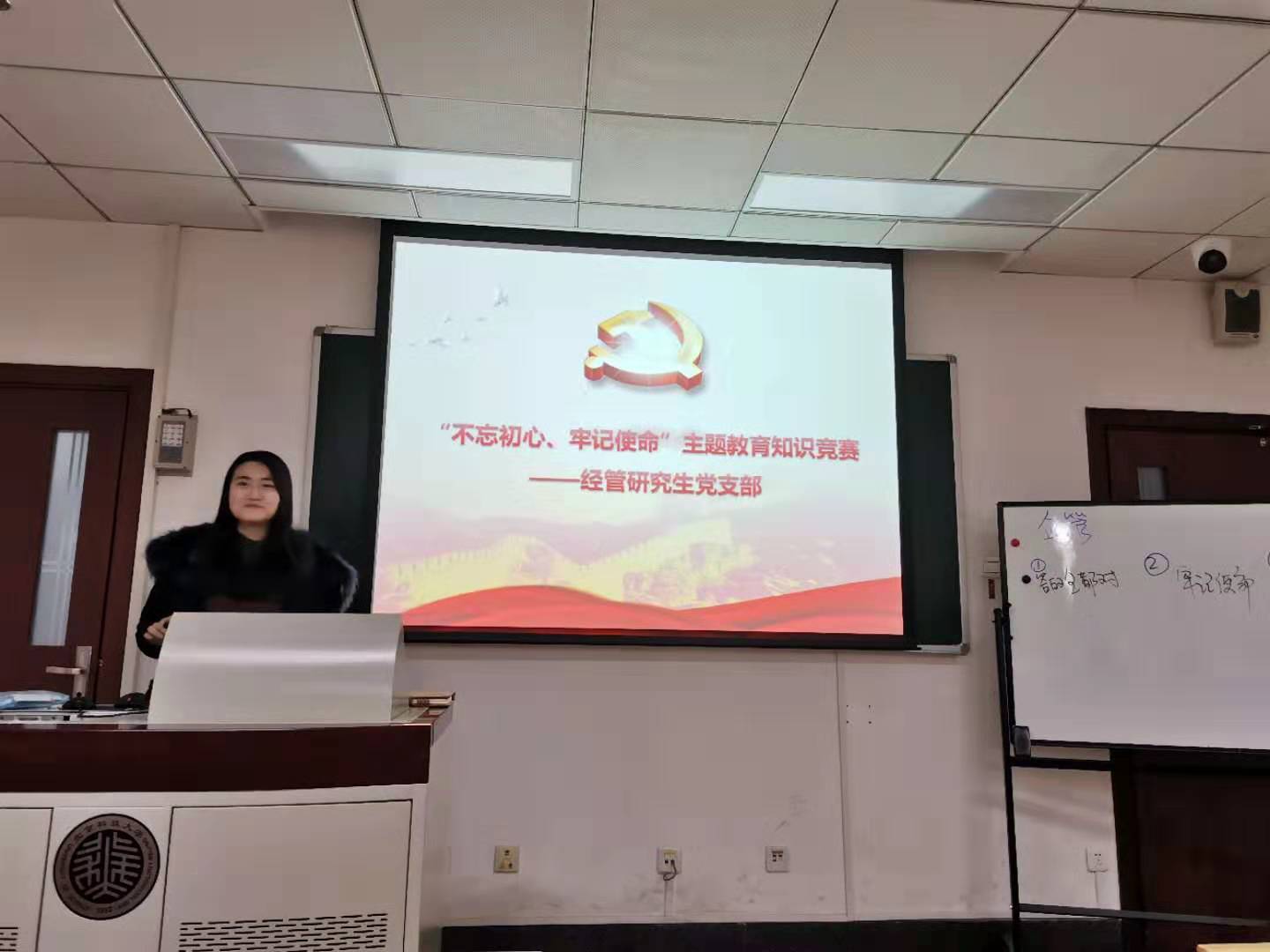 为深入推进“不忘初心、牢记使命”主题教育,12月30日下午3点30分,企管研19党支部于管楼504教室开展了“不忘初心、牢记使命”主题教育知识竞赛。竞赛由李响老师主持,主要包括习近平新时代中国特色社会主义思想、党的十九大精神、党章党规、主题教育“应知应会”、党务知识等相关内容。