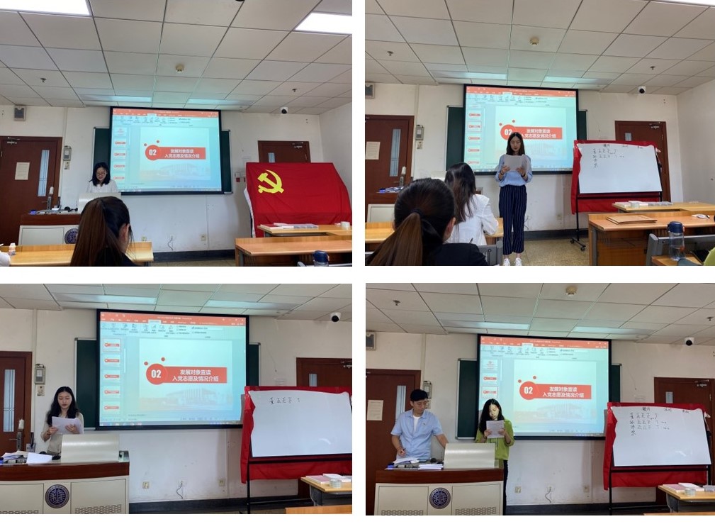 本次党支部活动共分为三个部分。首先是党支部的党员发展大会,本次发展大会有四位发展对象,分别是董雅贤、孙艺源、沐嘉慧和宗慧敏同志。四位同志分别就本人履历、社会关系等情况进行了汇报,随后由尹香婷同志、巩忠霞同志等几位入党介绍人分别介绍了两位同志在积极分子期间的具体表现,表明四位同志在学习科研、日常生活中表现优异,并积极参加各项活动,同意其入党。