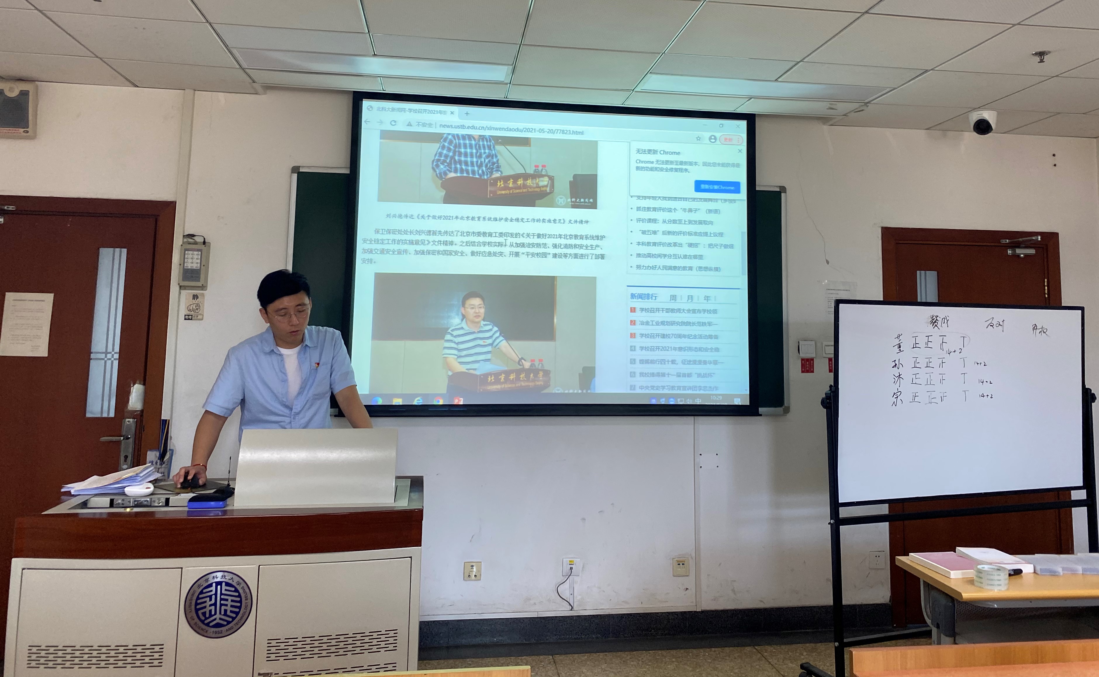 随后,在支部书记讲党课的环节,支部书记先是传达了学校2021年意识形态和安全稳定工作会议精神,表明党支部全体成员在落实意识形态安全责任制、助力平安校园建设方面要发挥好战斗堡垒作用和先锋模范作用。
