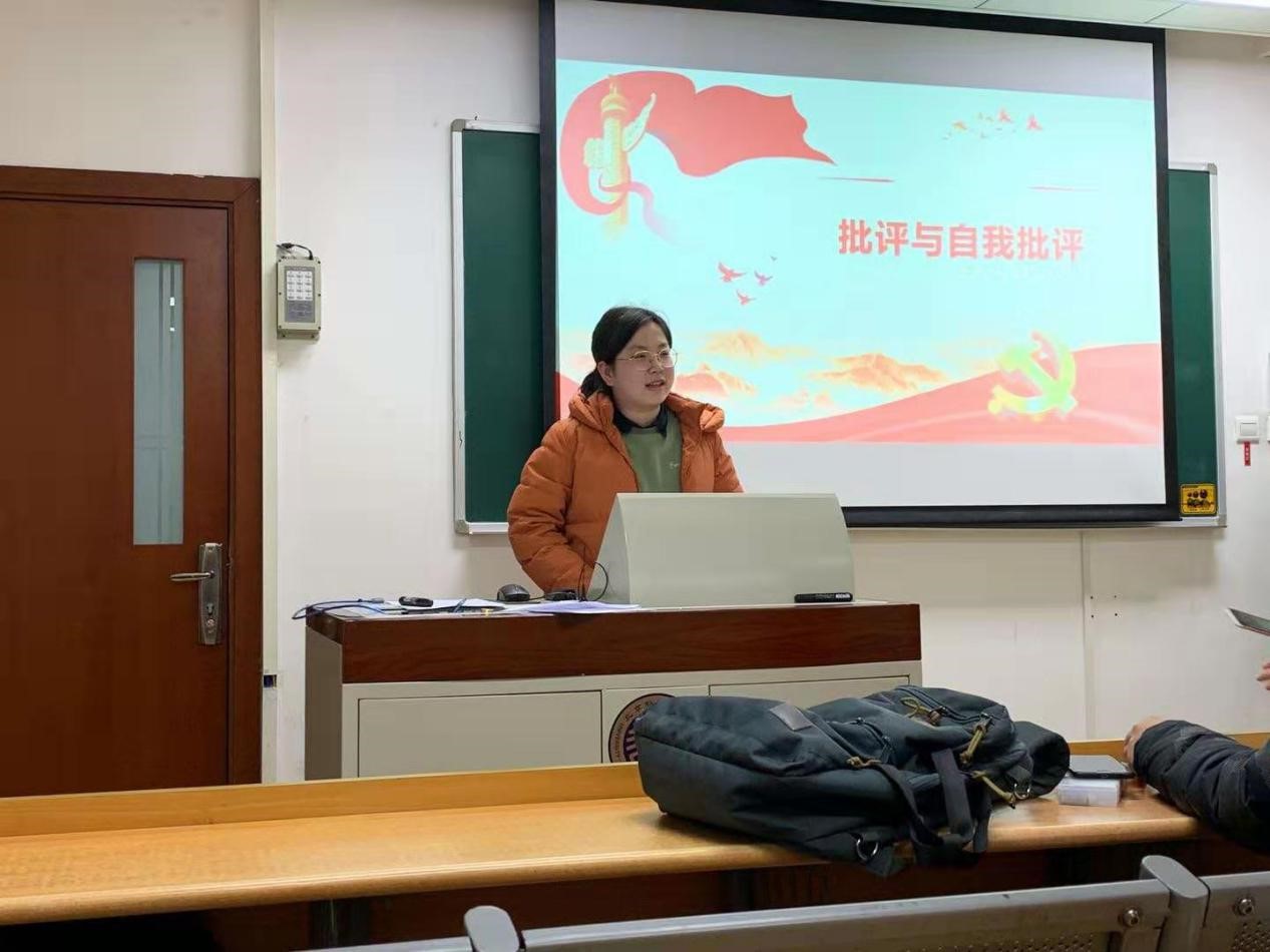 党支部书记周孜烁宣布大会正式开始,全体党员依次上台进行批评与自我批评,着重指出自己在思想上、学习上和工作中的不足并提出了改进措施,也对自己提出了更为严格的要求,决心积极发挥党员先锋模范作用。