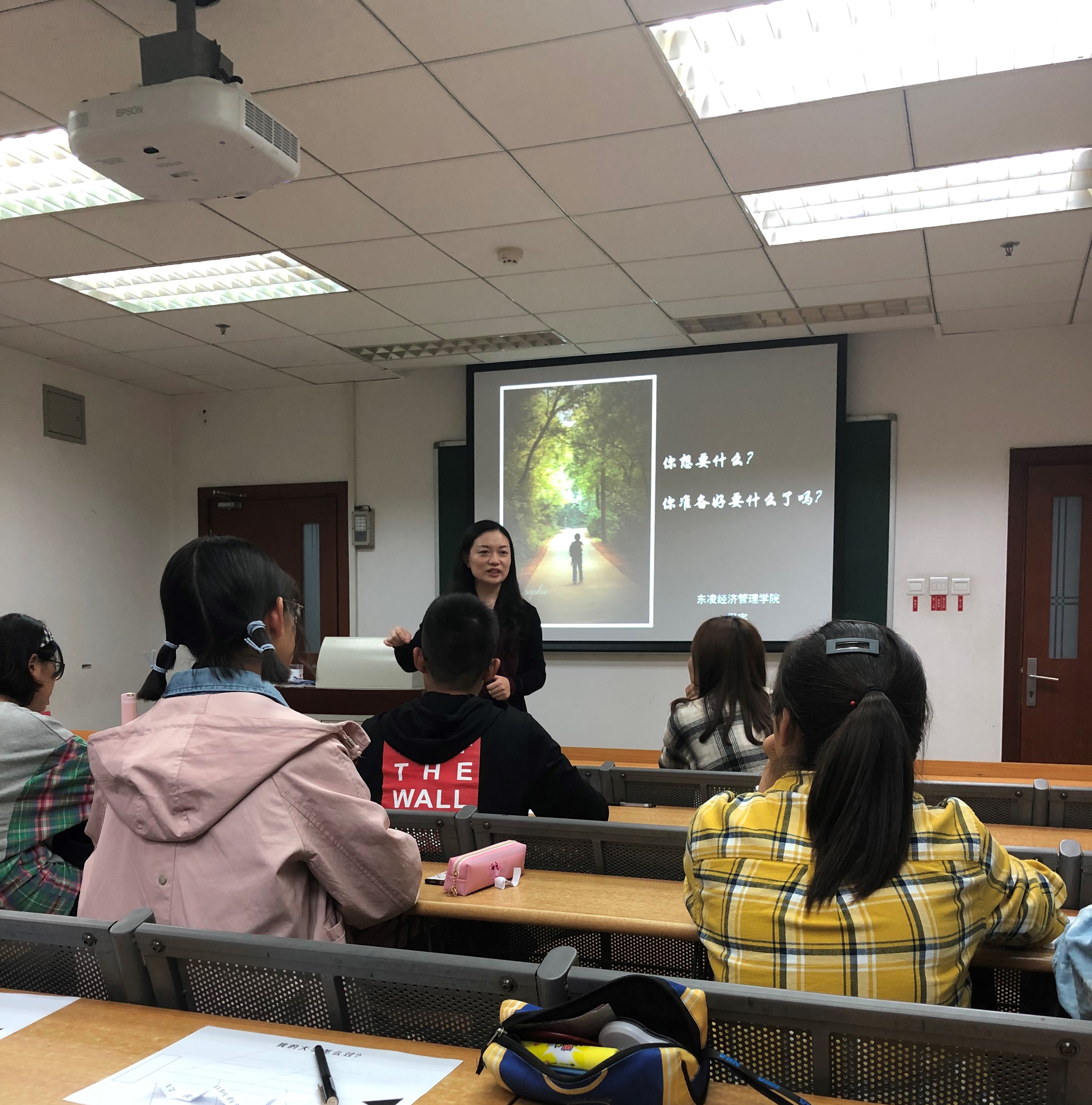 紧接着,倪宇老师与同学们进行了交流。她围绕“你想要什么?你准备好要什么了吗?”这两个问题展开了探讨。结合前几届毕业生的真实故事,倪宇希望同学们能吸取教训,吸收经验,平衡好知识、学位、锻炼、空间的时间分配,利用好大学这个平台,为自己的大学树立一个明确的目标并为此制定具体的计划,朝着这个方向不断努力。