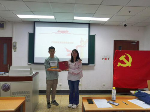 首先现任党支部党支书宋翔宇、组织委员兰岚和宣传委员曹颖做述职工作报告,阐述了在学习教育活动、支部建设等工作中取得的显著成效,同时也对支部中存在的一些问题进行了深刻的剖析,并号召全体党员,在新一届党支部委员会的领导下,继续加强学习、深刻领会,充分发挥党支部的战斗堡垒作用和党员的先进模范作用,推动党的教育事业不断向前发展。丁源同志也代表学院为对三位支委上一年的工作表示肯定,并赠送纪念礼品。