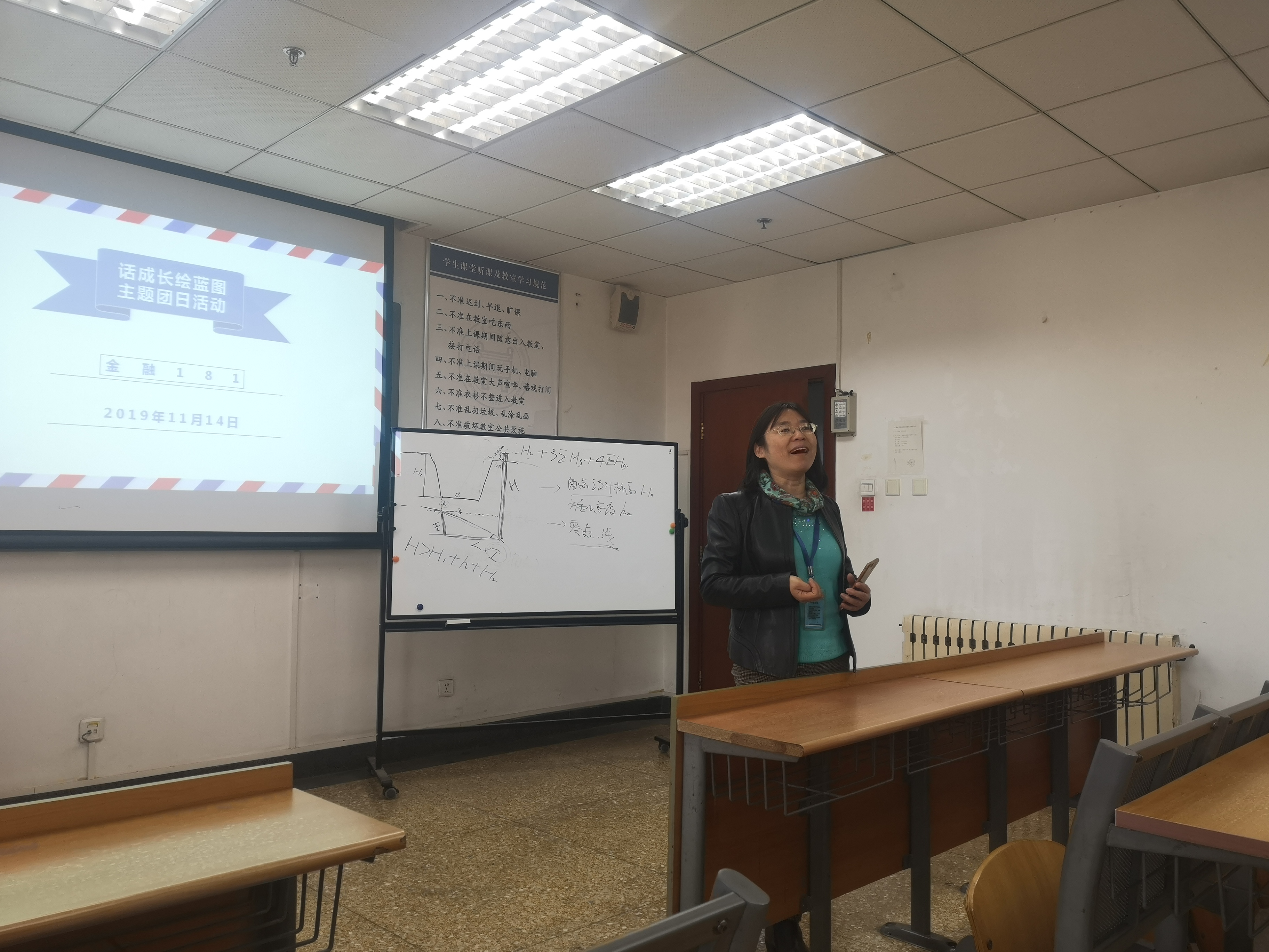 为了让同学们明确大二学年的学习目标以及未来的发展规划,增强对自己学业的认识和理解,11月14日下午15:30,金融181班举行了“话成长 绘蓝图”主题团日活动。金融181班导师郭骊、辅导员胡鹏凯作为嘉宾参加了本次活动。