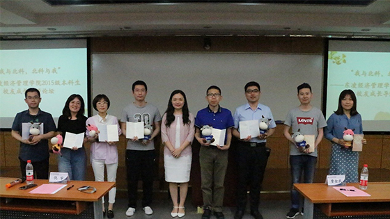5月19日, “我与北科,北科与我”——经管学院2015级本科生校友成长导师论坛在经管楼210成功举办。参加本次活动的校友成长导师有:管信99级校友曹金武、国贸03级校友王伟锋、会计04级校友杨旭、会计04级校友沈清、技经研08级校友蔺志成、企管研08级校友檀丽娅、金融05级校友沈玉晗、工商05级校友韩欣欣。东凌经济管理学院党委副书记倪宇出席活动。