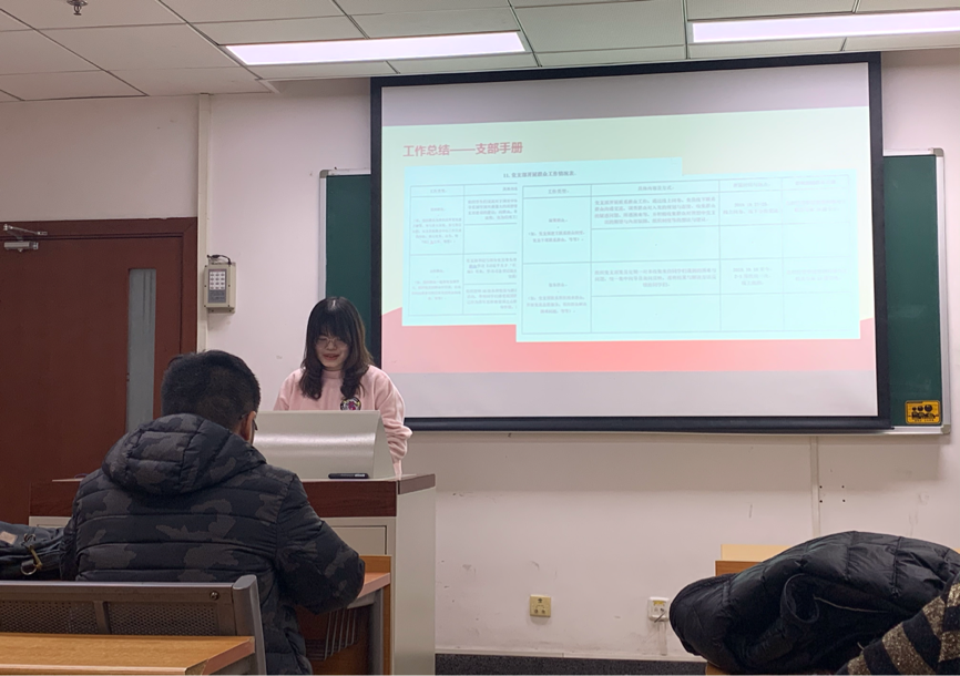 本支部全年工作开展情况良好,在党员队伍建设方面,严格按照党员发展程序来壮大支部,严格审核每一名发展对象与预备党员的条件,力求培养一批优秀的发展对象,作为党组织的重要人才储备;在集体活动组织方面,分别开展了集体观展、集体观影的活动;在理论学习方面,由周孜烁带头集体学习,为大家指出每一章的主题宗旨和重点内容,针对性地深入学习。周孜烁同志接下来进行批评与自我批评,提出应加强理论知识学习,培养良好的学习习惯,同时提高工作创新能力。
