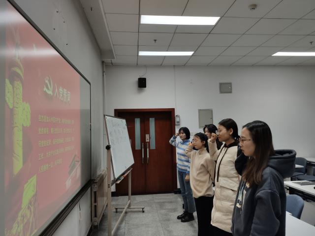 首先,书记尹香婷同志介绍本次预备党员转正的流程,并在全体成员起立奏唱国歌中拉开帷幕。随后预备党员陈若佳宣读转正申请,就其对党的认识、入党动机、本人履历等方面进行汇报,并向大家汇报自己一年考察期内在思想、学习、工作等方面的表现。