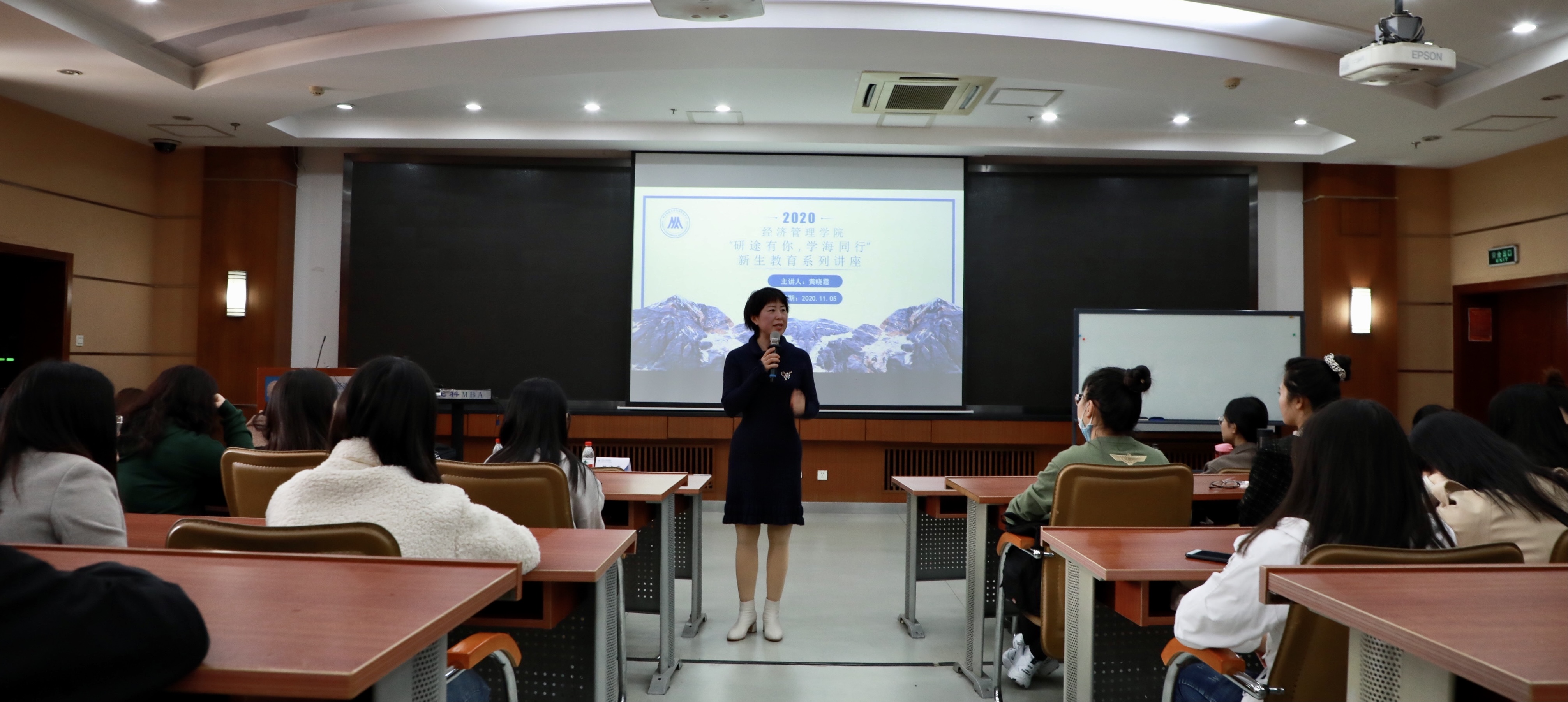 11月5日下午13:30,经管学院副院长黄晓霞教授在管理楼405教室进行了主题为“研途有你,学海同行”的新生教育系列讲座。经济管理学院2020级全体研究生、辅导员李响共同聆听了讲座。