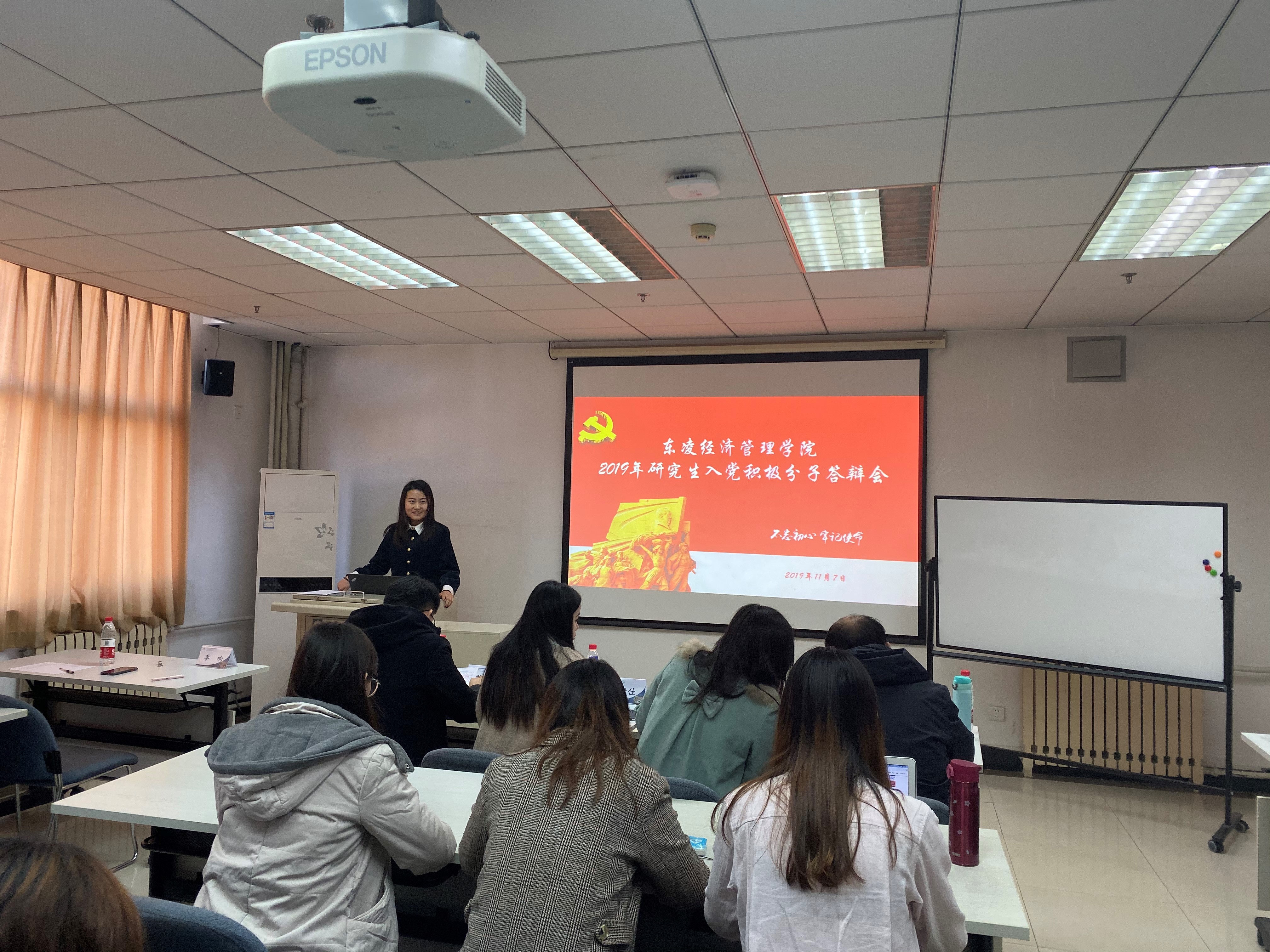 11月7日上午9点,东凌经济管理学院研18党支部在管楼511教室开展了入党积极分子答辩活动,学院组织员曲涛、党委秘书曾凌燕、研工组组长张晓佳、博士生辅导员崔帅参加本次活动,辅导员李响主持活动。