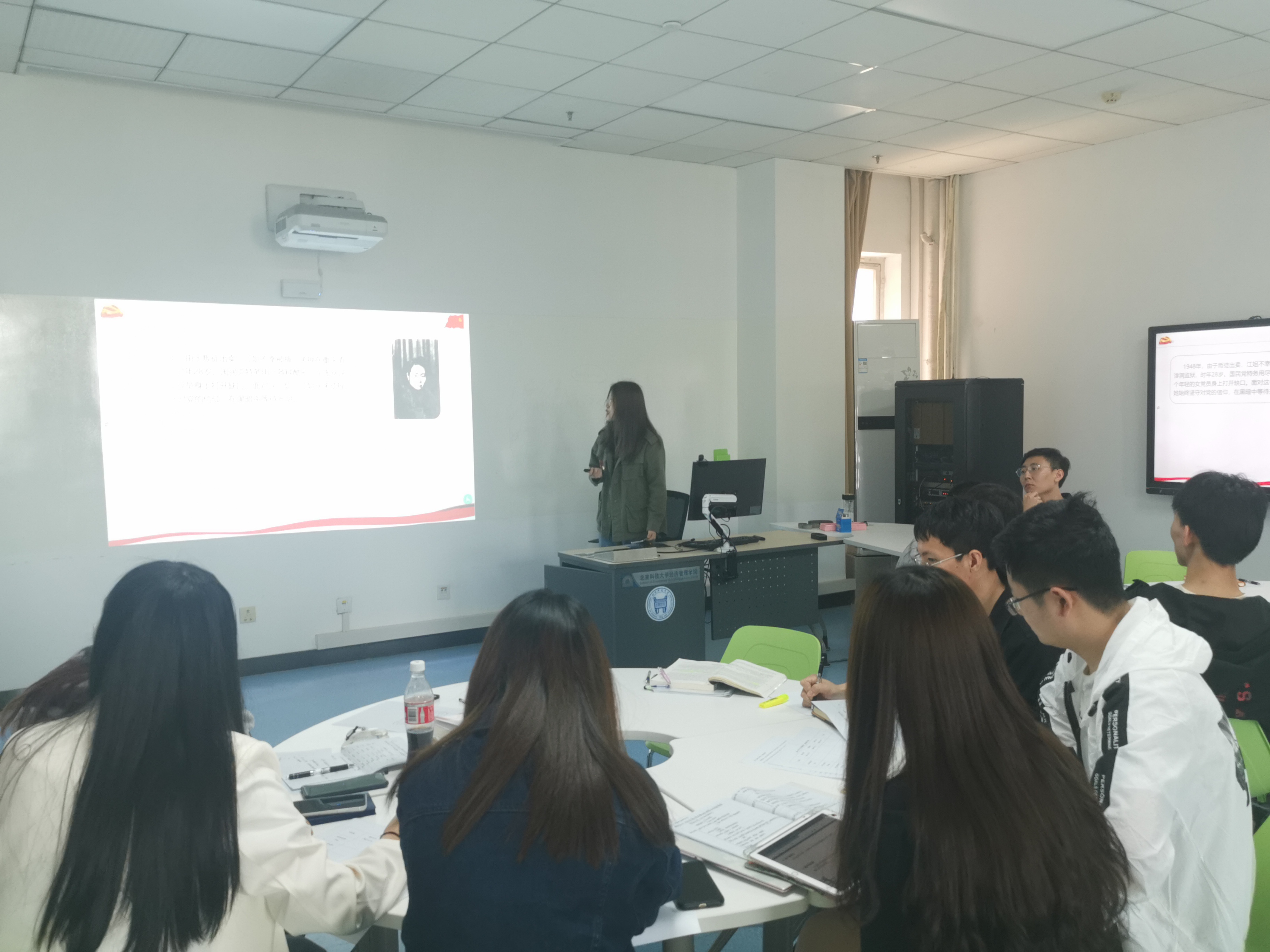 第二位分享的是本科18级党支部党员李钰葳,她分享的主题是英雄关系的传承,李钰葳介绍了小说《红岩》中“江姐”原型江竹筠同志的英雄事迹,并联系实际,表达了对“英雄”的理解。