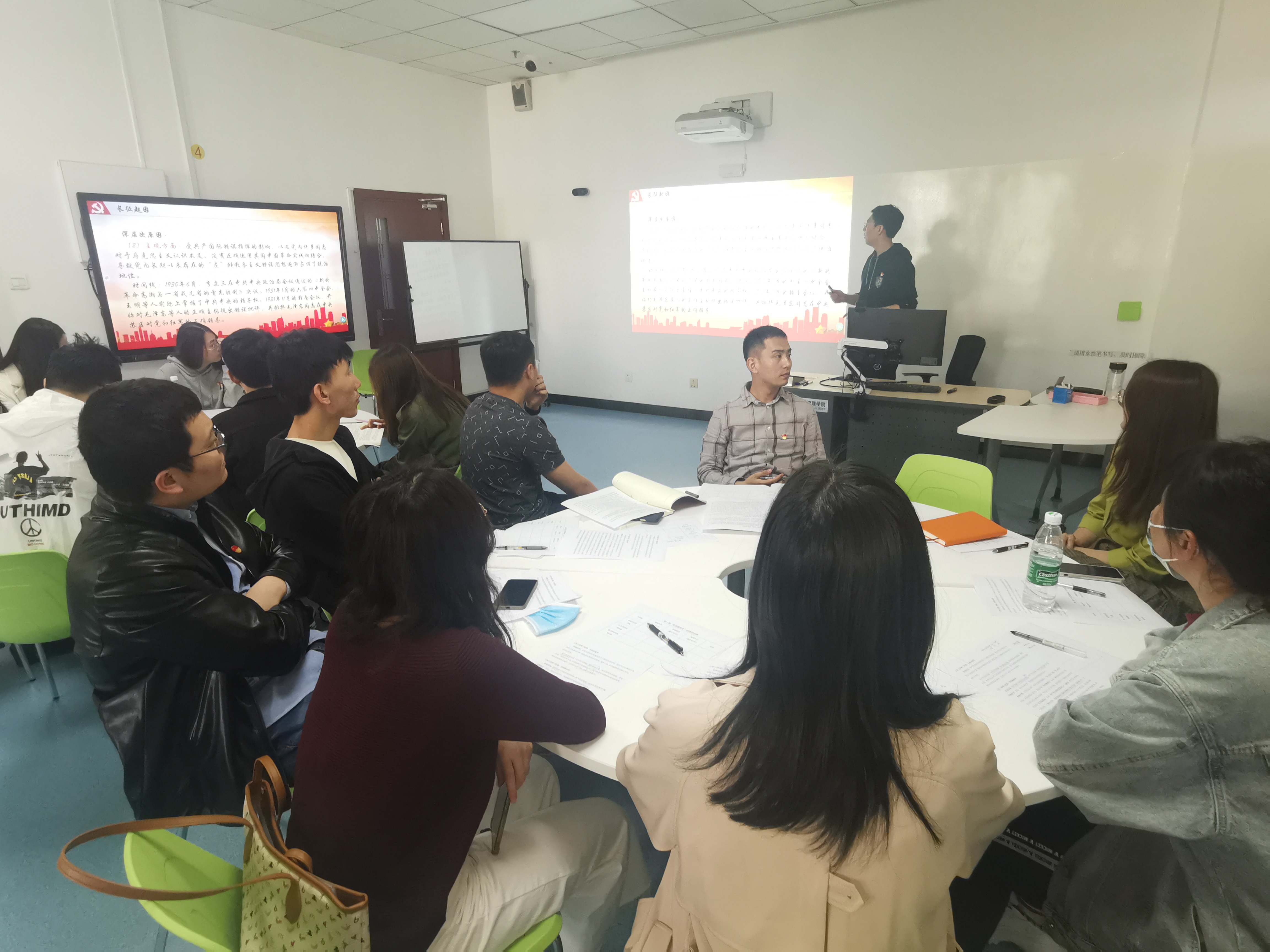 与会党员们在认真倾听了学习汇报后,对三位党员的汇报进行了打分,并依据汇报内容依次发表了自己的见解,对本次汇报提出了打磨和改进意见,并且分享了自己在本次学习中的感悟。