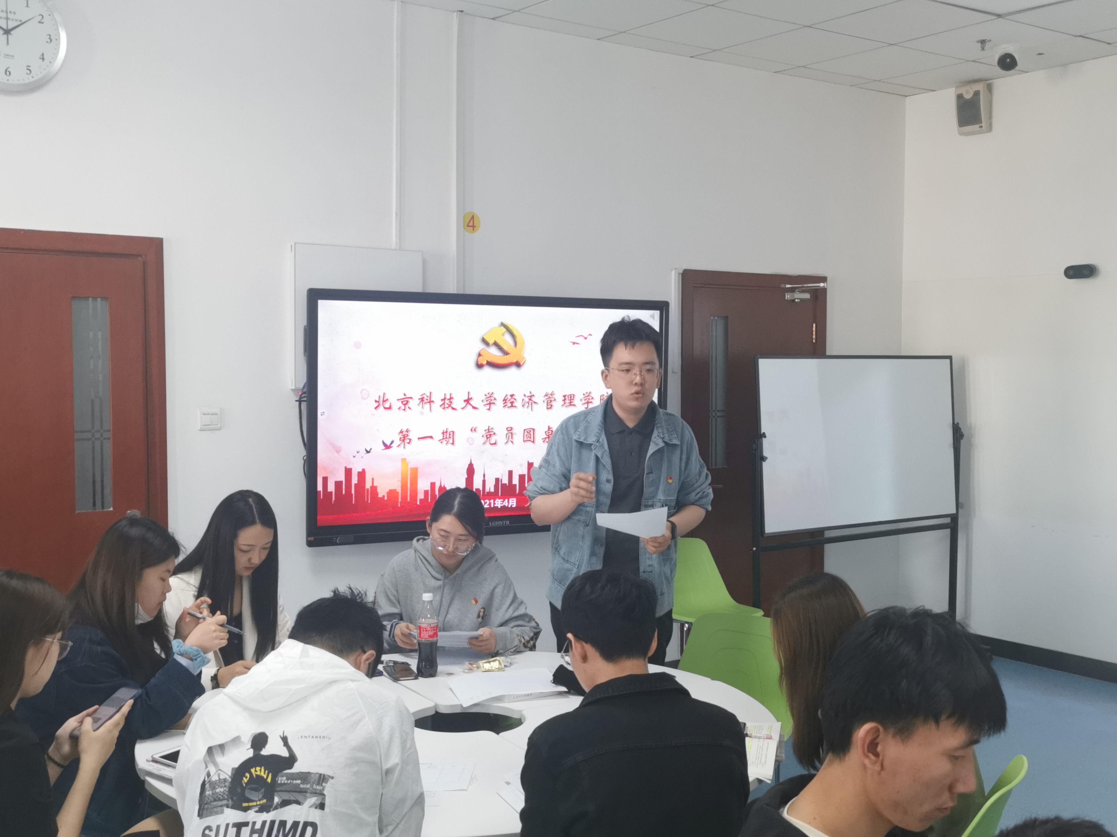 按照经济管理学院学生党支部党史学习教育“三学三讲 纵览百年”工作安排,结合4月23日世界读书日的重要契机,第一期“党员圆桌会”于经管楼404顺利举办。出席本次会议的有辅导员李响、丁源、孙鑫老师,汇报人管工研党支部党员胥子政、本18党支部党员李钰葳、本低党支部党员于越,以及学院其他学生党支部的党支部书记,活动由党建辅导员张洪榛老师主持。