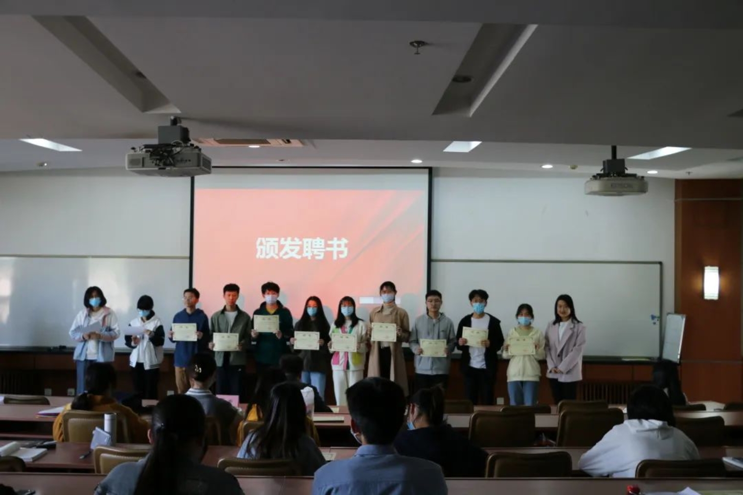 第二个环节是尹希尧老师和李响老师为本科21级全体宿舍长颁发聘书,满满的仪式感令宿舍长们备受鼓舞。