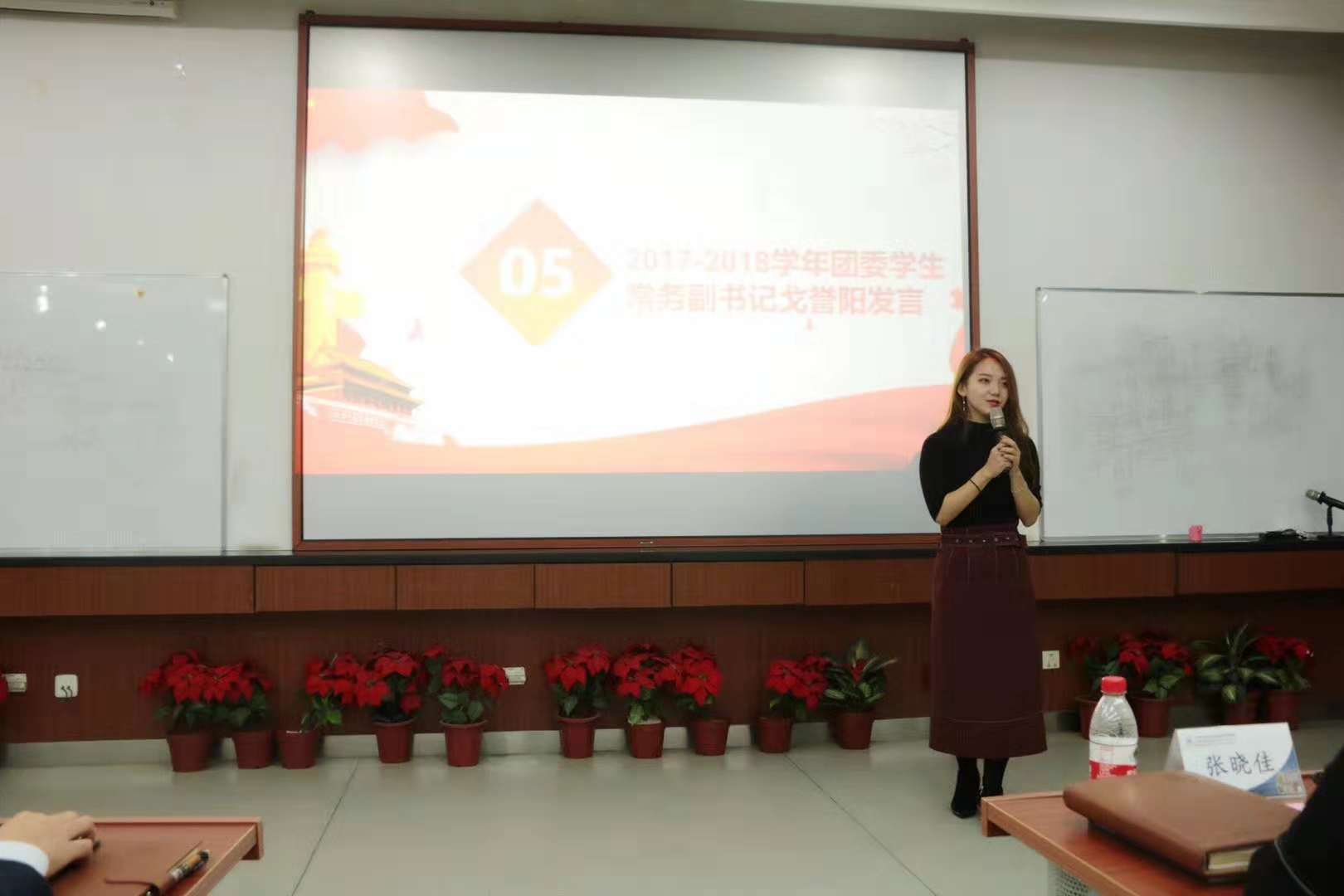 随后,戈誉阳作为前任主席代表讲述了自己做学生工作的心路历程,谈到学生工作的辛苦与收获,表达对学院的感激之情,对现任的学生干部表达期许、送上祝福。完成经管团学的不断传承。