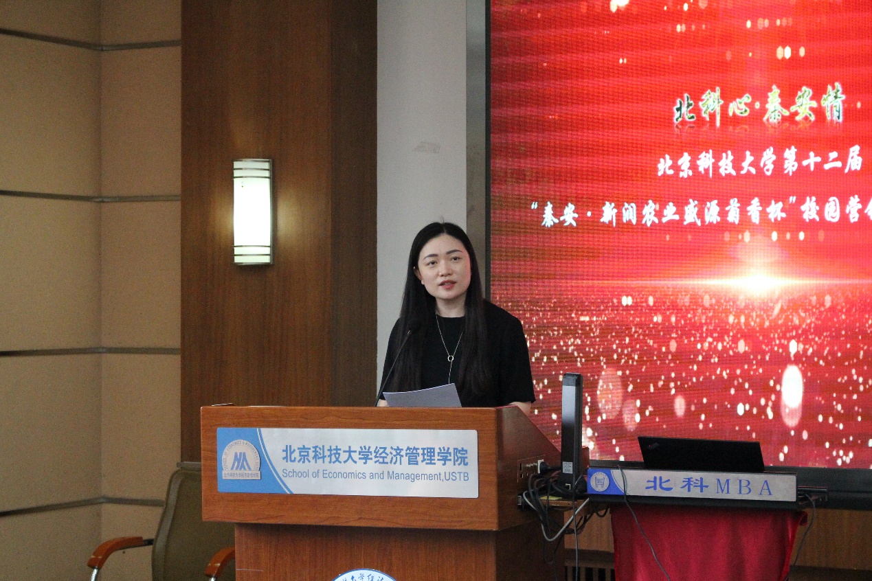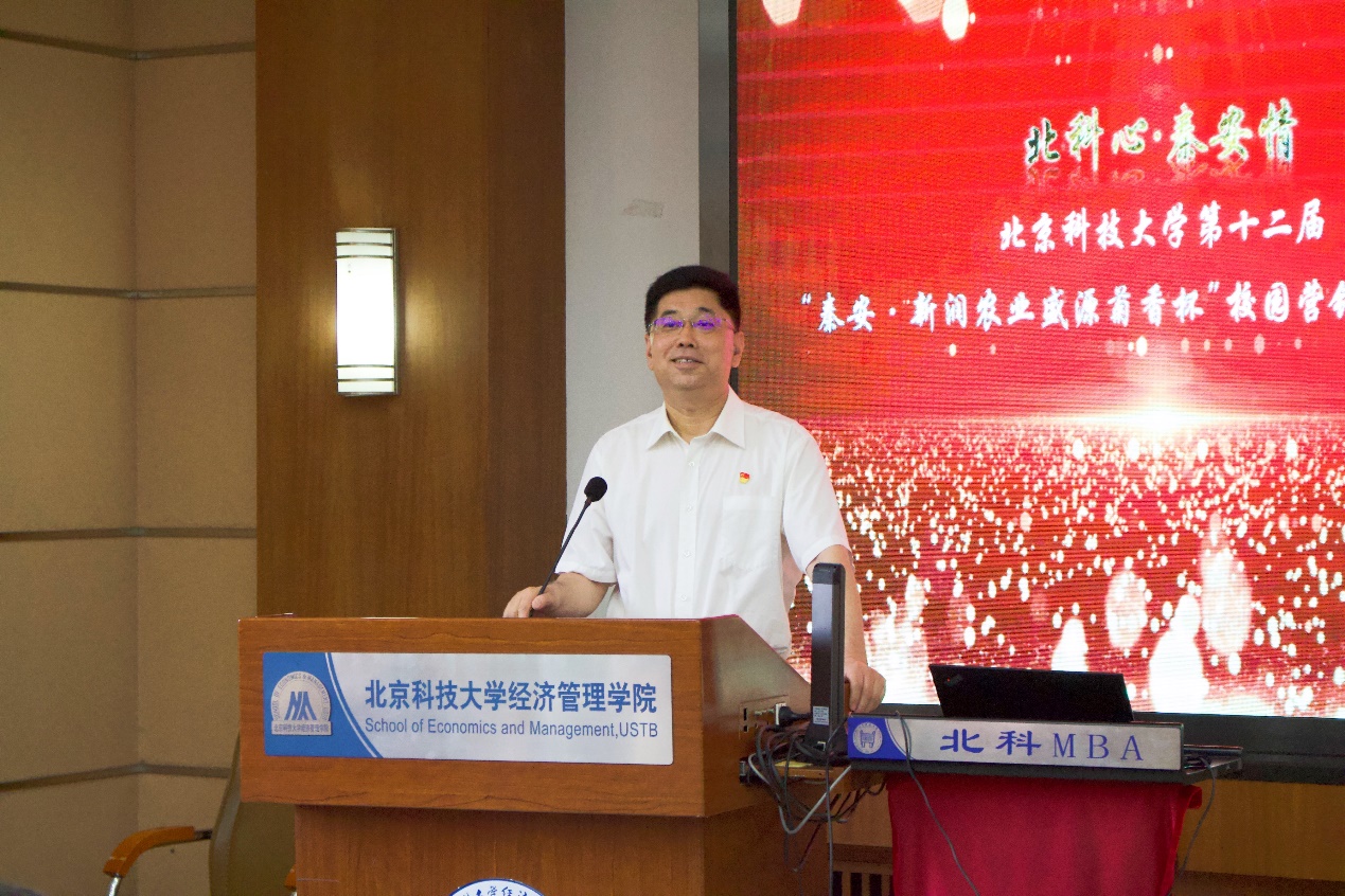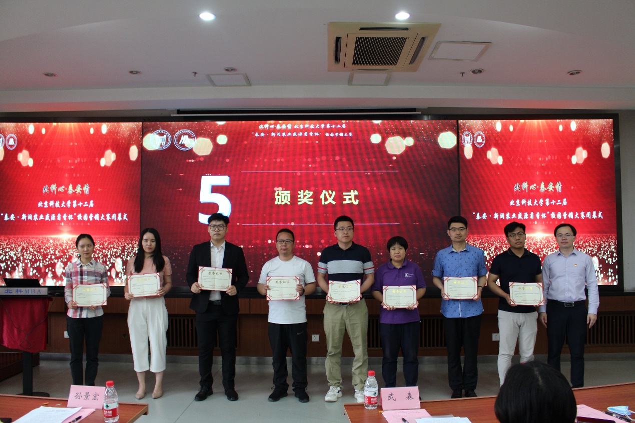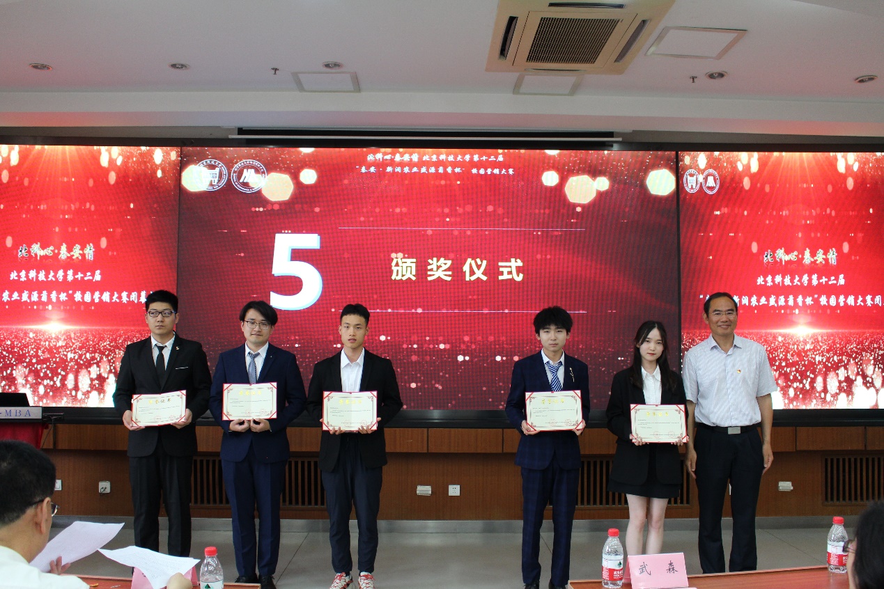 为表彰本次营销大赛的优秀团队,展现北科学子才智风貌,闭幕式于6月8日下午在经管楼405召开。校党委副书记孙景宏,经济管理学院党委书记武森,校帮扶工作办公室主任、挂职秦安县副县长陈雪松,帮扶办副主任兼党办、校办副主任蒋灵斌出席闭幕式大会,会议由经济管理学院党委副书记倪宇主持。