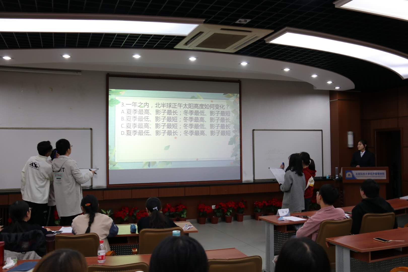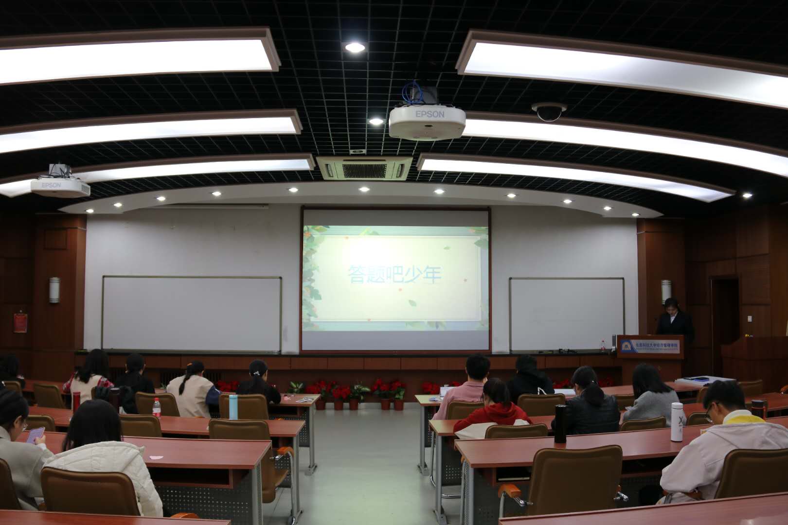 11月7日晚,第四届“答题吧少年”百科知识竞赛经济管理学院分站赛在经管楼313举行。本次活动是以班级对抗赛为基础,面向全体大一新生举办的大型百科知识竞赛,题目分为选择题和填空题,共两个环节,涉及文学、艺术、科技、体育、地理、历史、校园文化等多方面的内容,考察范围非常广泛,题目难度也有很大跨度。