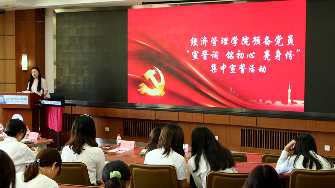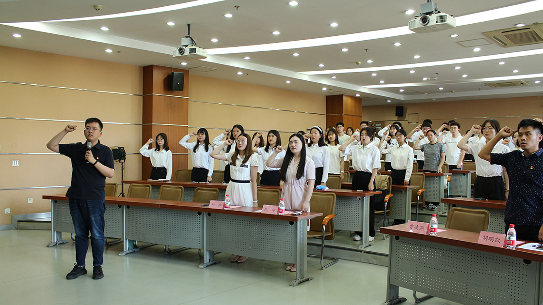 6月17日下午,经济管理学院预备党员“宣誓词 铭初心 亮身份”集中宣誓活动在经管楼405成功举办。学院党委副书记倪宇、党委秘书曾凌燕、本科18级辅导员孙鑫、胡鹏凯出席会议,会议由经济管理学院党建辅导员张洪榛主持。