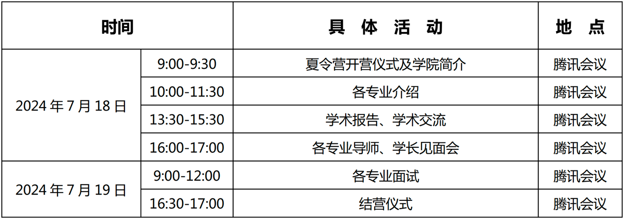 2024年学术夏令营活动均在线上进行,通过审核的申请者请提前下载安装好腾讯会议软件,活动具体腾讯会议号另行通知。