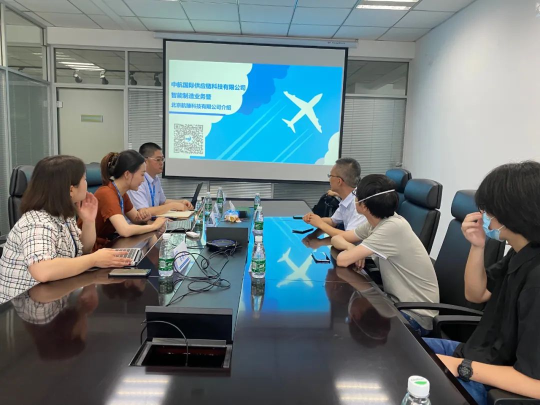 2022年7月27日,北京科技大学经济管理学院应用经济系20级国际经济与贸易专业的同学们走进了中航国际顺义产业园,参观了中航国际供应链科技有限公司(以下简称中航国际)智能制造事业部及其航空工程能力提升中心。中航国际作为中央企业中国航空工业集团有限公司的成员单位,笃行“航空报国、航空强国”使命,旨在以专业化核心能力为支撑,依托航空工业并利用全球资源,为客户提供采购、运输、仓储配送、转包生产、设备采购、智能制造、智能装配等供应链集成服务,努力为航空用户创造更大价值,为中国航空工业发展提供更好支撑。本次认识实习暨实践育人活动采用“线下引领+线上协同”的形式,应用经济系教学主任马建峰副教授、应用经济系王凯副教授、俞峰老师以及学生代表陈一凡实地参加,国贸20级全体学生在线同步参加,其他专业的学生也在线上观摩,在线人数逾百。