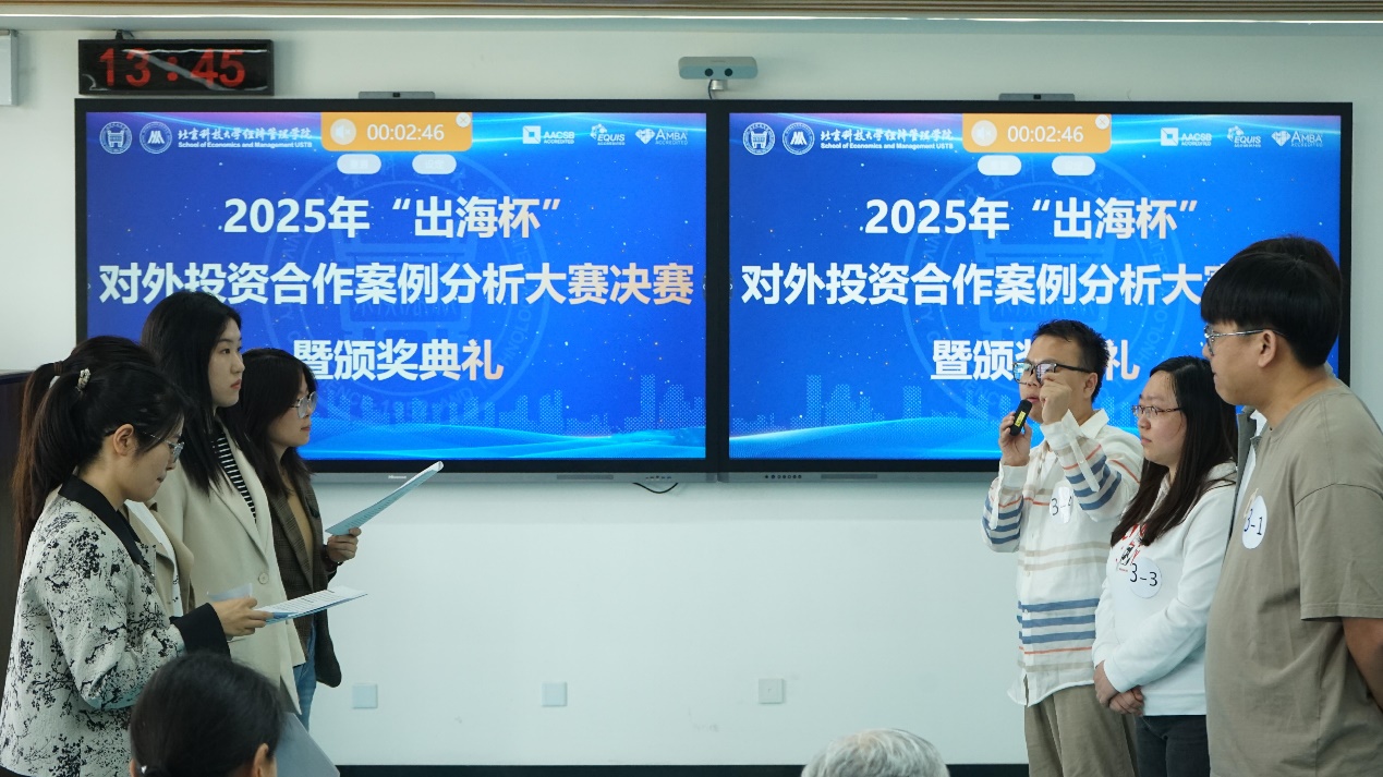 4月20日,2025年“出海杯”对外投资合作案例分析大赛决赛暨颁奖仪式在经济管理学院举办。大赛以“企业的国际化突围之路”为主题,汇聚了经管学子前沿的商业智慧,献礼学校73周年华诞。学校校长杨仁树,中国机电产品进出口商会常务副会长兼专家委员会主任委员郑超出席仪式,中国机电产品进出口商会专家委员会副秘书长刘国玉、国际产业合作服务中心主任董明、专家委员会副主任委员田威,学校党办、校办副主任安晓东,经济管理学院副院长黄晓霞、专硕中心主任王琛、应用经济系书记邵燕敏等参加活动。