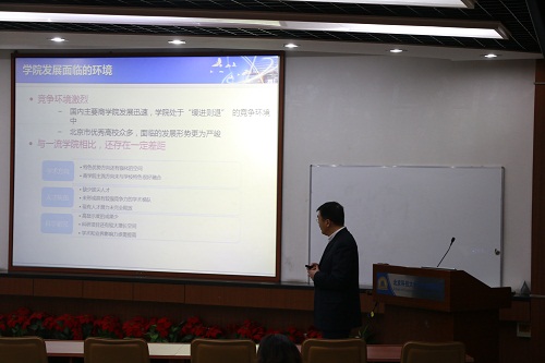 闫相斌院长对学院一年来在党建工作、本科生教学、研究生教学、学生工作、MBA/EMBA工作、科研和学科建设、师资队伍、国际合作与交流、校友工作、国际认证等方面总结,就2016年财务支出和使用情况作通报。报告中,闫相斌院长还从学院建设目标、学院发展面临的环境、学科建设、师资队伍建设、国际化战略等方面对2017年学院工作进行规划和设想,并代表学院感谢全体教职工一年来对学院工作的配合和支持,对全体与会人员致以新春的祝福。