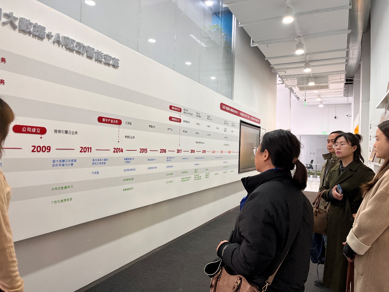 为深入推进工商管理学科专业发展、人才培养与实验室建设,2022年3月23日上午,北京科技大学经济管理学院工商管理系系主任张剑教授、邹鹏教授、姚卿副教授与青年教师张晓丹、楠丁一行五人,赴北京百分点科技集团股份有限公司调研、学习和交流。百分点科技首席数据科学家、数据科学实验室负责人杜晓梦博士热情接待,双方就数字化时代新商科专业建设面临的问题及建设方向展开深入探讨。首先,杜晓梦博士详细介绍了百分点科技在数据智能领域的成长经验,尤其自2014年数字产业元年以来在3C制造、零售快消、地产、媒体出版、工业互联网等行业领域积累的工作。围绕数据的采集、存储、治理、挖掘、可视化应用等全链条技术,公司核心业务就数据中台技术、智能挖掘、文本分析、知识图谱、大数据操作系统、商情洞察等技术不断演进。