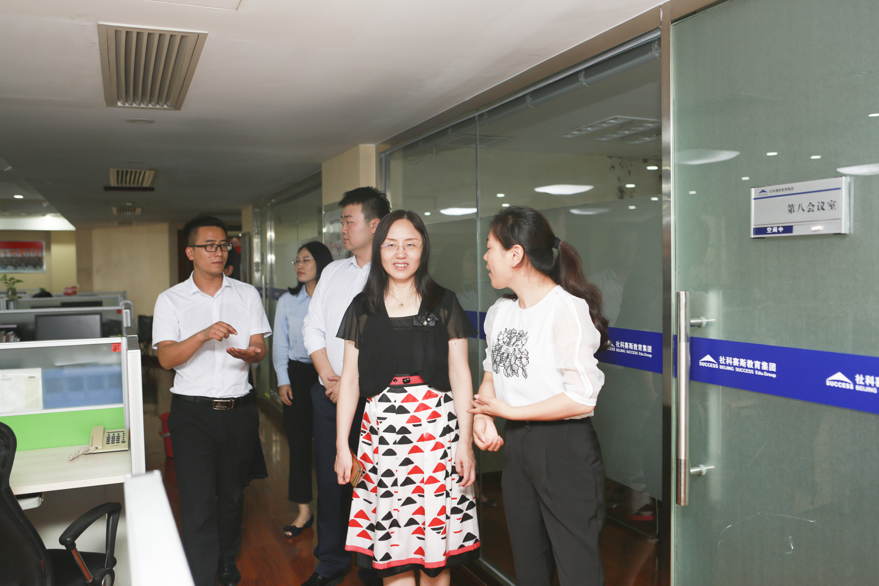 在社科赛斯教育集团校长助理兼MBA事业部总监刘春茶女士的引领下,李晓静主任一行首先对社科赛斯教育集团的公司环境进行了参观,并就公司企业文化和发展历程以及员工风采进行了整体了解。