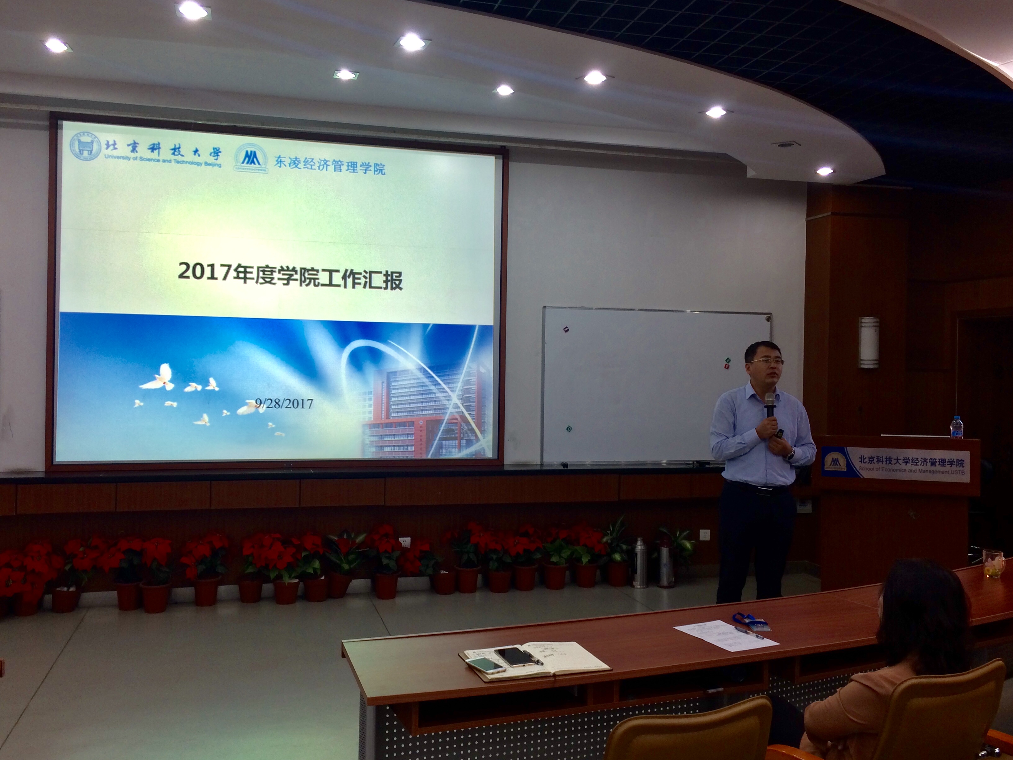 2017年9月28日星期四下午4点,东凌经济管理学院全院大会暨全体教职工集体理论学习会在经管楼313召开。学院邀请科学研究与发展部李玉华老师为全体教职工解读科研经费使用和管理办法,会议由刘明珠副院长主持。