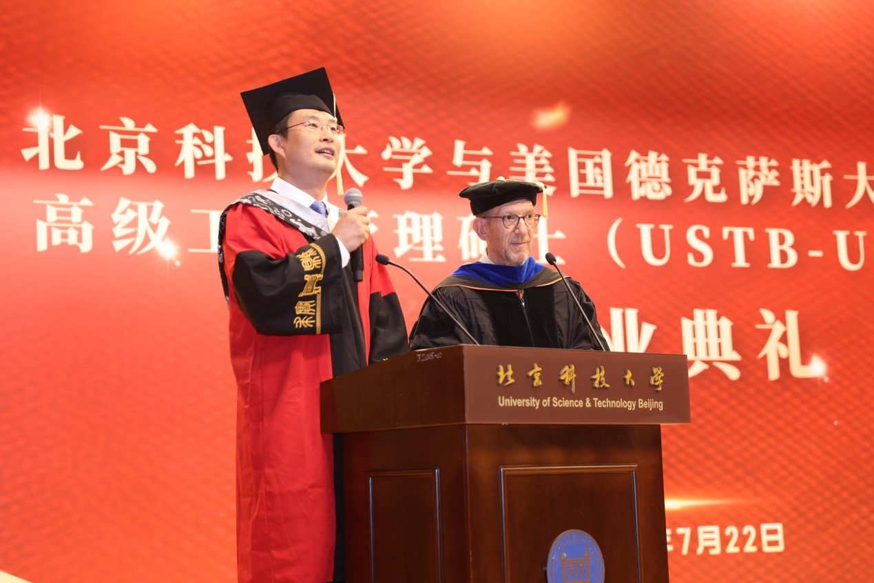 7月22日下午,北京科技大学-美国德克萨斯大学阿灵顿分校EMBA合作办学项目毕业典礼暨学位授予仪式在学校教工活动中心礼堂隆重举行。美国德克萨斯大学阿灵顿分校副教务长Daniel Himarios,国际合作中心Christina Chin, 北京科技大学党委副书记、纪委书记张大林,党委常委、副校长闫相斌,经济管理学院院长谷炜,党委书记武森,副院长黄晓霞,党委副书记、副院长杨志达出席毕业典礼。