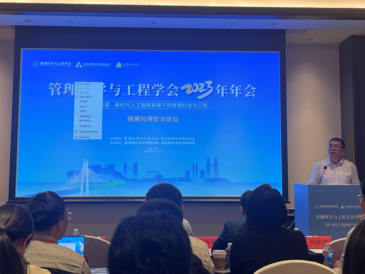 2023年11月11日至12日,管理科学与工程学会2023年年会在重庆召开。会议由管理科学与工程学会、复旦管理学奖励基金会主办,重庆邮电大学经济管理学院和现代邮政学院承办。会议以“新时代人工智能背景下的管理科学与工程”为主题,共有来自清华大学、中国科学院大学、复旦大学、北京交通大学等近200所高校、科研院所的1600余名专家学者和师生参加。会议设有工程管理分论坛、大数据与商务分析分论坛、预测与评价分论坛、智能决策分论坛、管理科学与工程应用分论坛、质量与可靠性管理分论坛、协同创新与管理分论坛、供应链与运营管理分论坛等8个分论坛,其中预测与评价分论坛由我院负责承办。