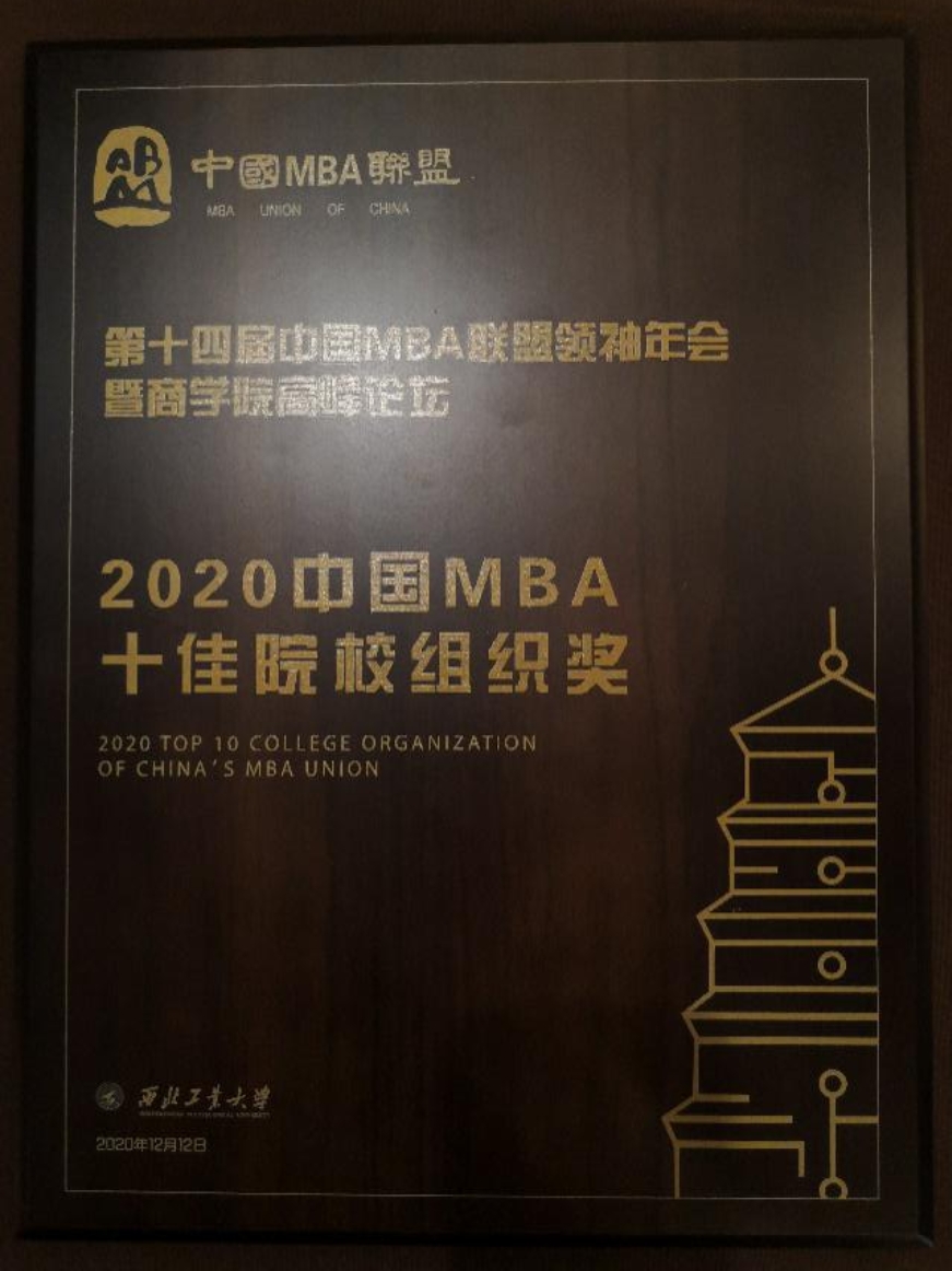 2020中国MBA十佳院校组织奖证书