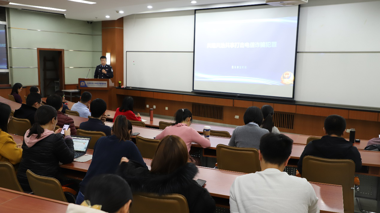 2019年12月12日,北京科技大学MBA中心邀请包头市公安局反诈中心主任郭秉义同志给经管学院广大师生做了一场生动的 “打击电信网络犯罪新模式” 的公益讲座。增强广大师生安全防范意识,有效预防各类电信诈骗行为。