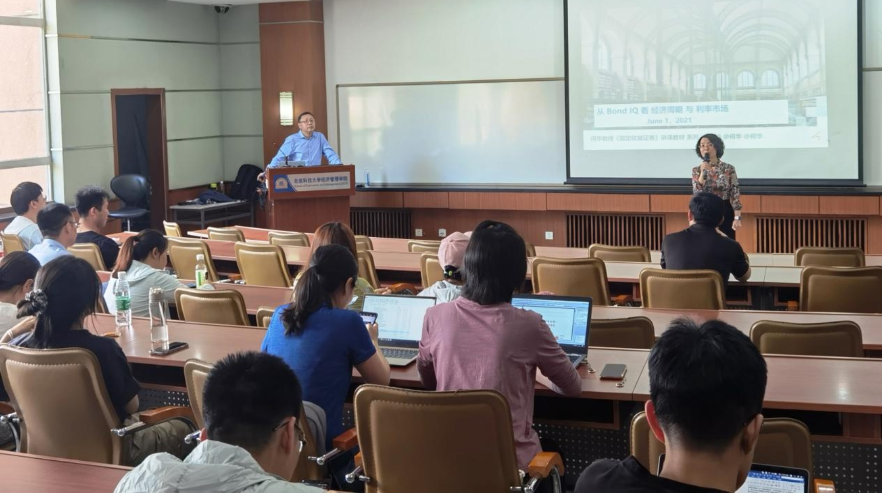 6月1日下午,九鞅投资创始人/CEO、九鞅科技创始人/董事长何华教授应邀走进北京科技大学经管学院学术讲坛,为我院MBA学生和金融专业学生带来了一场主题为《从Bond IQ 看经济周期和利率市场》的专业讲座。