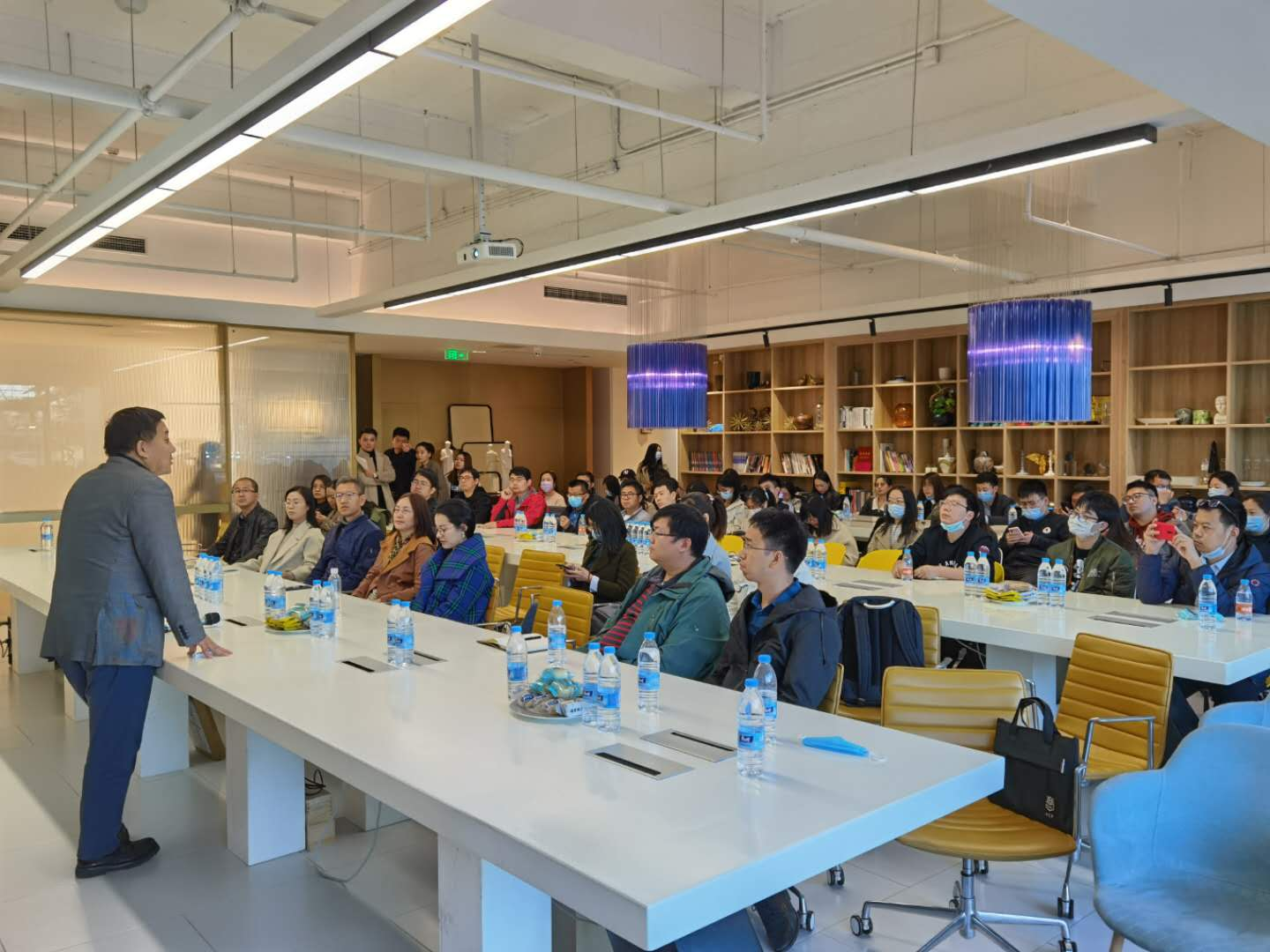 本次参观有幸邀请到业之峰集团张钧董事长亲自分享企业发展史。张董经营业之峰集团二十余年间不乏挑战和机遇,一直秉承“1米宽、100米深”的专注与敬畏。面对跨界经营的“野蛮人入侵”,不同于众多家装业老炮儿的抵触,张董尊重对手,“先假设其正确,为其找解释,再跳出问题得出相对客观的结论”, 快速取其精华,创立“全包员”品牌实现对市场新需求的精准定位。除了坚守产品质量,张董还不吝分享了对广告营销“N分之一价格,N倍投放”“宁长勿短叫嚣式播放”的心得和效果,以及业之峰桥牌勇夺北美桥牌大赛冠军的成功要素和宣传效应。此外,不得不提的还有业之峰集团在新冠疫情初期,承诺“不减薪、不裁员,做受人尊敬的企业”并陆续向武汉慈善总会捐款上百万,将员工关怀落到实处,并彰显出企业的社会担当。张董讲话金句频出,对企业文化、战略规划、广告营销、品牌塑造深入浅出的分享更让在场学生受益匪浅。